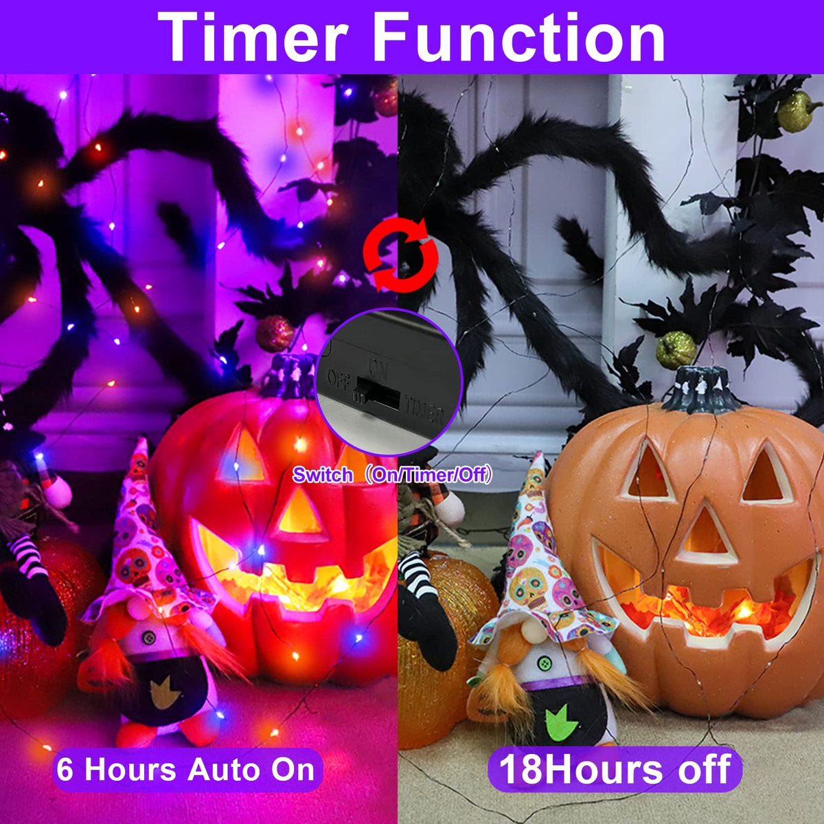 Q: Do the lights have a timer function?A: Yes, these string lights feature a timer function that allows them to stay on for 6 hours and then automatically turn off for 18 hours.