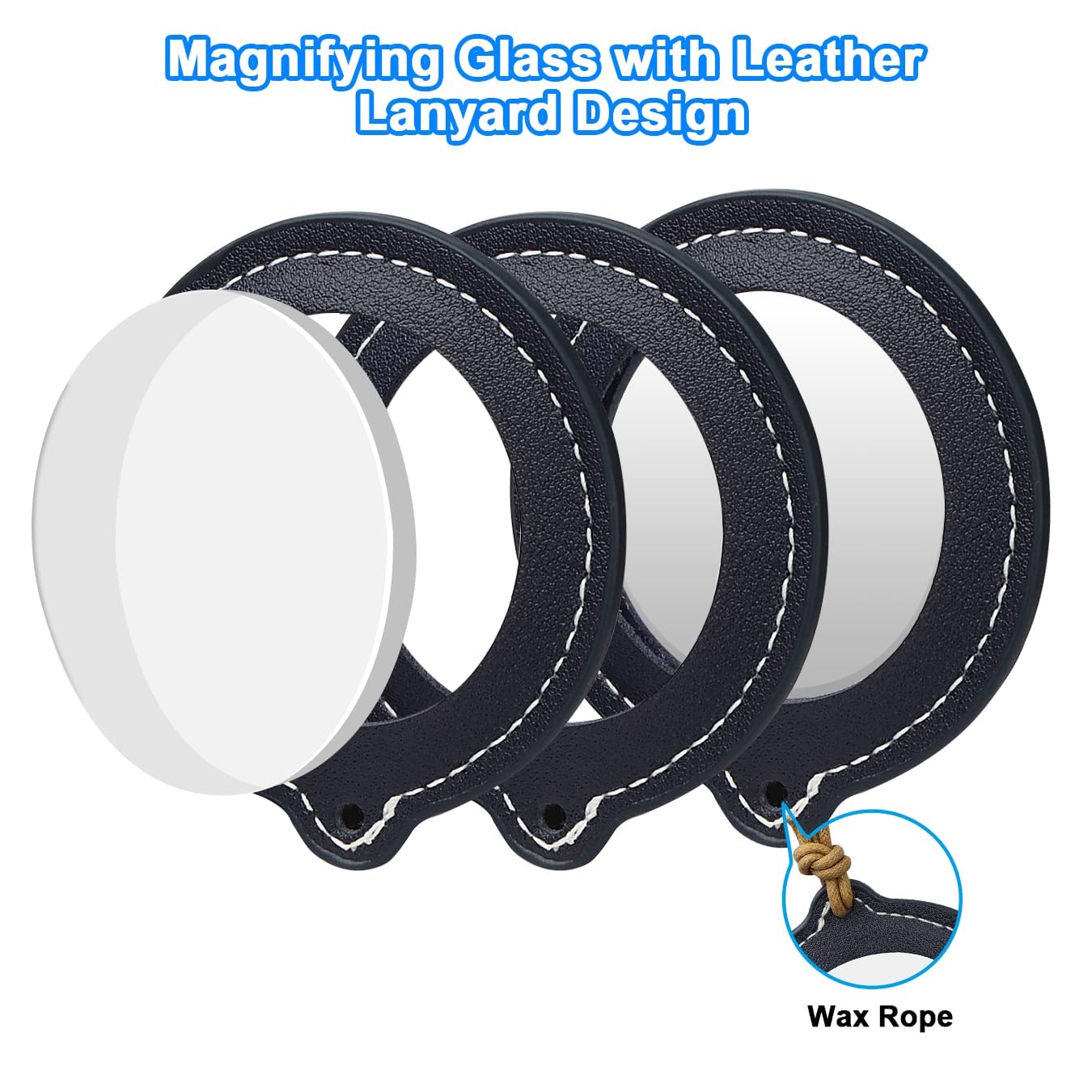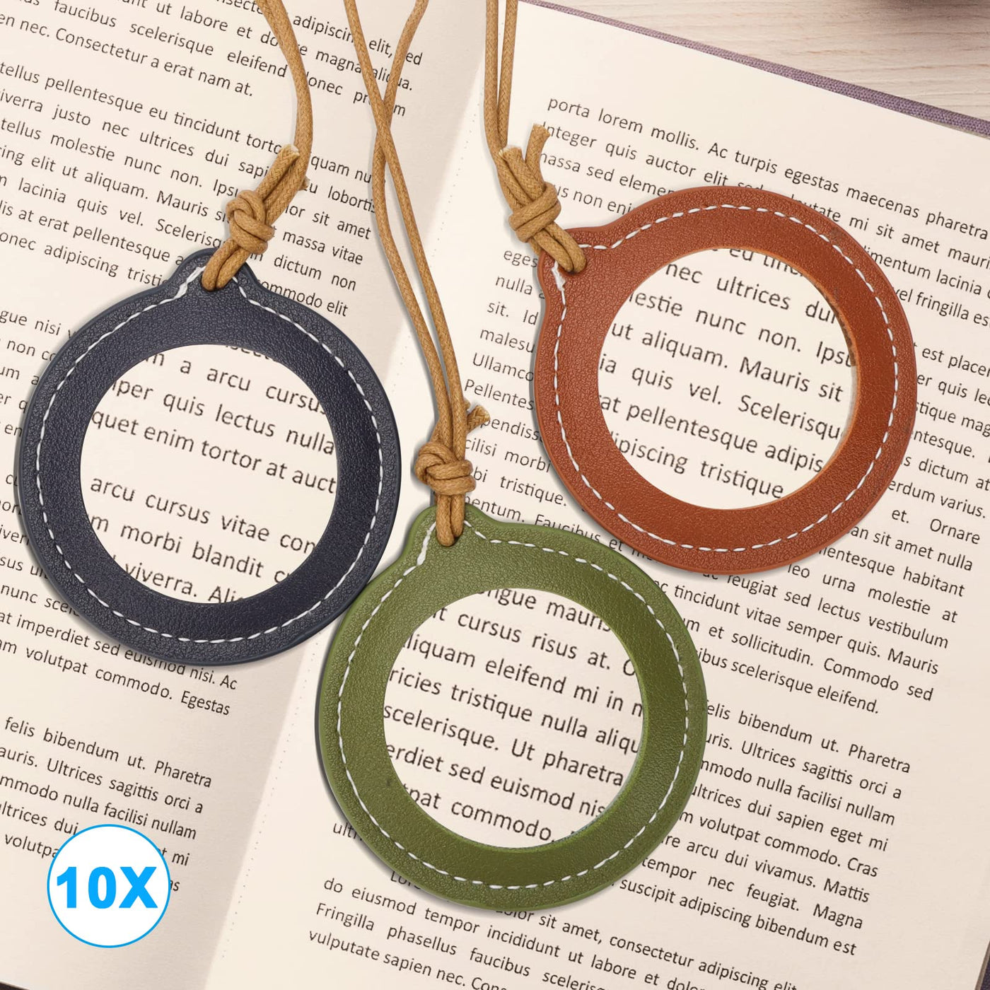 3Pcs Leather Necklace Magnifying Glass, 10X Reading Magnifier for Seniors & Kids, 80MM Magnifying Lens for Book Newspapers Readi