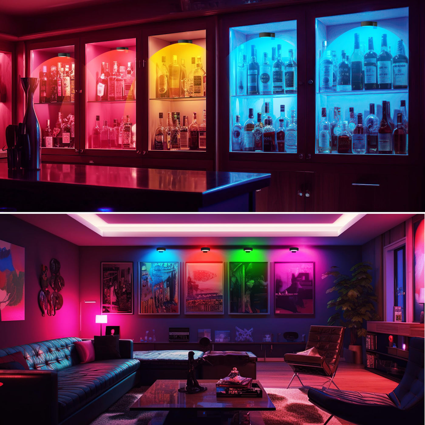 Q: What color modes do the picture lights offer?A: The picture lights feature 13 preset RGB colors along with 2 dynamic modes: SMOOTH, which cycles through colors gradually, and FADE, allowing you to set your favorite color while it slowly transitions.