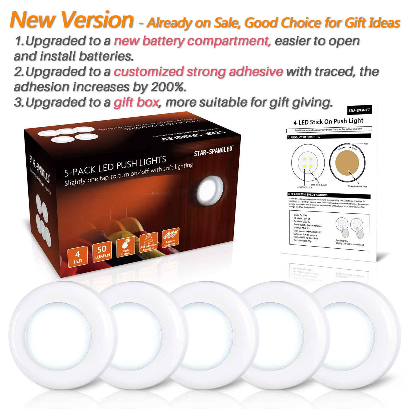These Led Push Lights Are An Excellent Choice For Anyone Looking To Enhance Safety And Visibility In Their Home Or Workspace. With Their Energy-Efficient Design, Ease Of Installation, And Versatility, They Are Perfect For Families, Students, And Anyone Needing Reliable Lighting In Dark Areas. Upgrade Your Home Lighting With The 5 Pack Led Push Lights And Enjoy The Convenience They Bring To Your Daily Life.