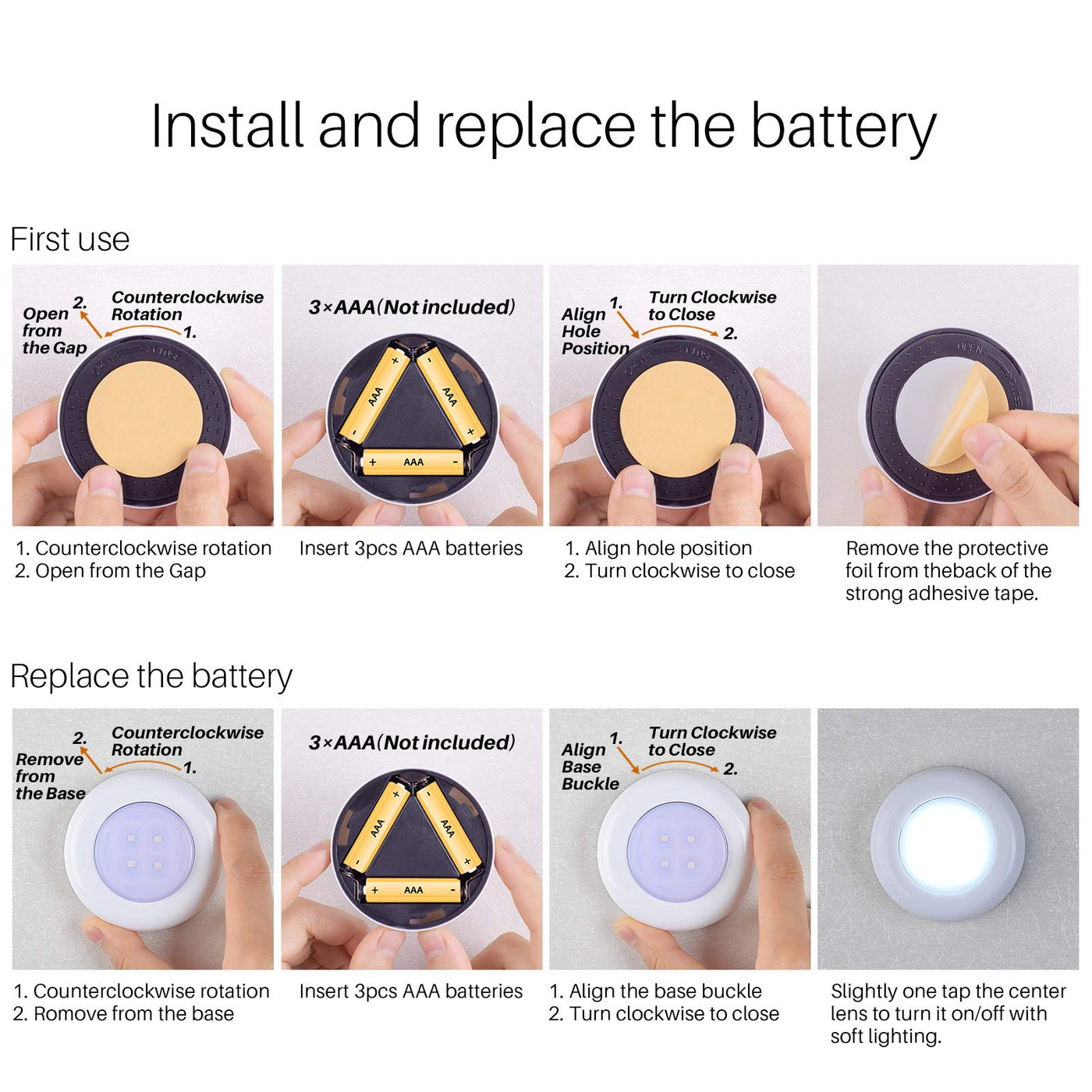 Made From Durable Plastic, These Led Push Lights Feature A Sleek And Compact Design Measuring 7Cm. Each Light Is Equipped With Four Energy-Efficient Smd Leds That Produce A Powerful Output Of 50 Lumens, Ensuring That You Have Enough Light To See Clearly In Any Dimly Lit Area. The Gentle Eye-Care Lighting, Provided By A Milky Anti-Glare Panel, Protects Your Eyes While Creating A Warm And Comfortable Environment Suitable For Children And The Elderly. Installation Is Straightforward, Thanks To The Customized Super Strong Adhesive Tape, Allowing You To Stick Them Anywhere You Desire. These Lights Are Powered By Three Aaa Batteries (Not Included), With A Recommendation For Alkaline Batteries For Optimal Performance Lasting Up To 50 Hours.