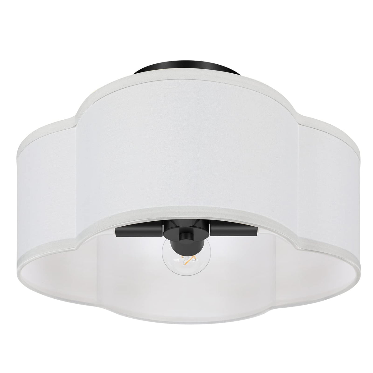 4-Light Semi Flush Mount Ceiling Light Fixture, Black Modern Close To Ceiling Lamp With White Fabric Shade, Farmhouse Bright Lig