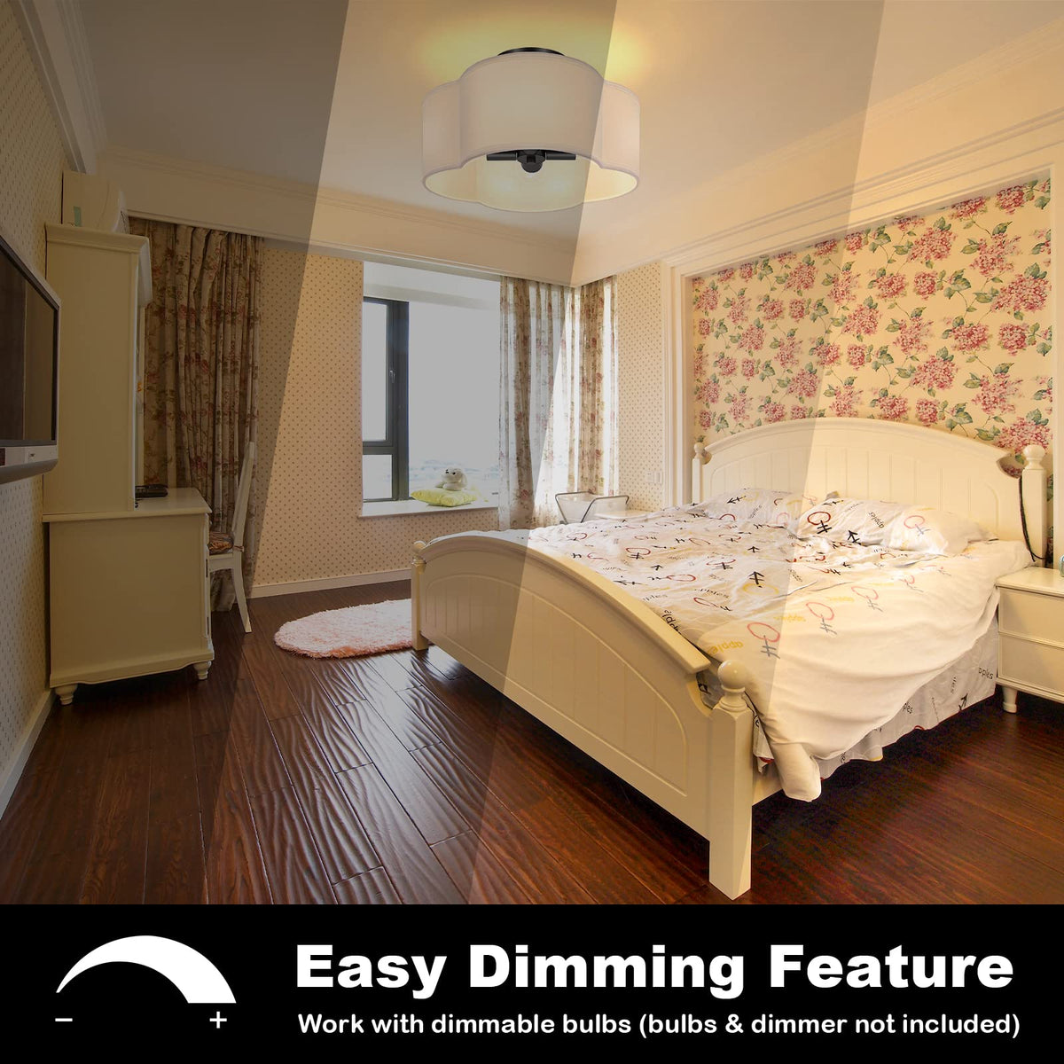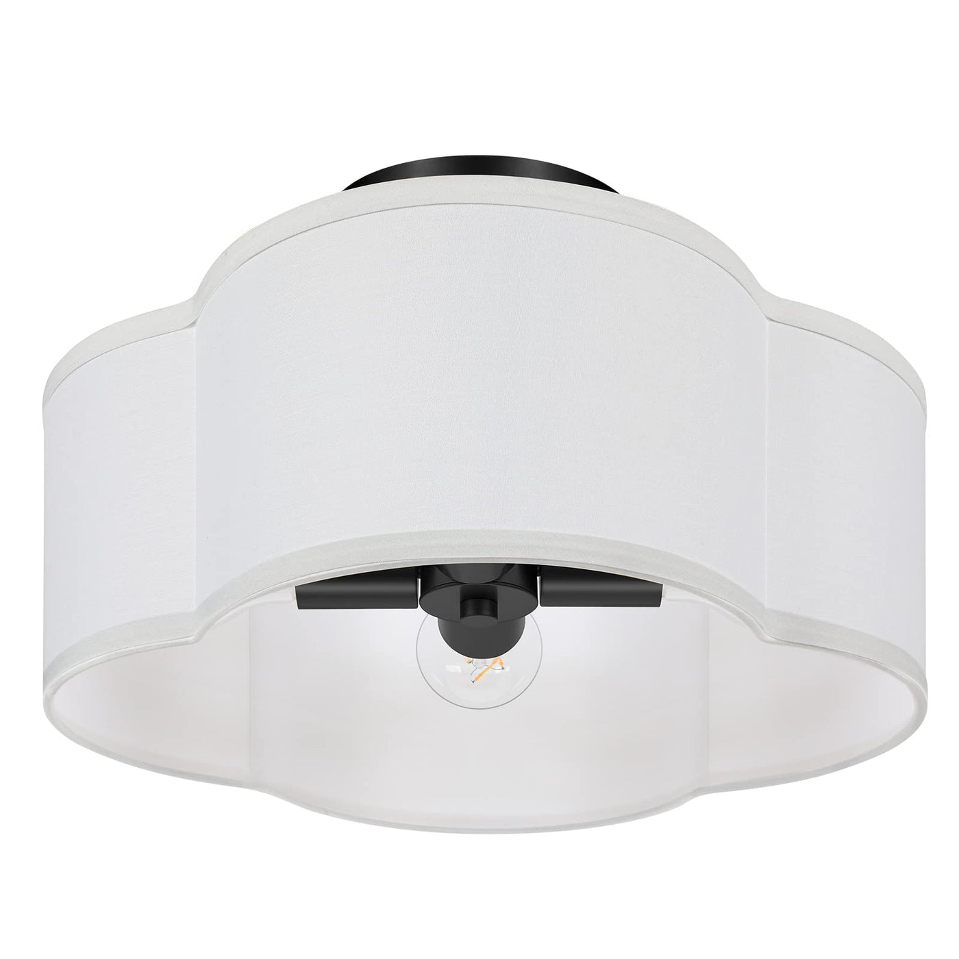 Q: What materials are used in the construction of this ceiling light?A: The 4-Light Semi Flush Mount Ceiling Light Fixture is constructed with high-quality metal for durability and longevity. It features a classic matte black finish that prevents rusting and maintains its shiny appearance, along with a soft fabric shade that protects your eyes by diffusing light.