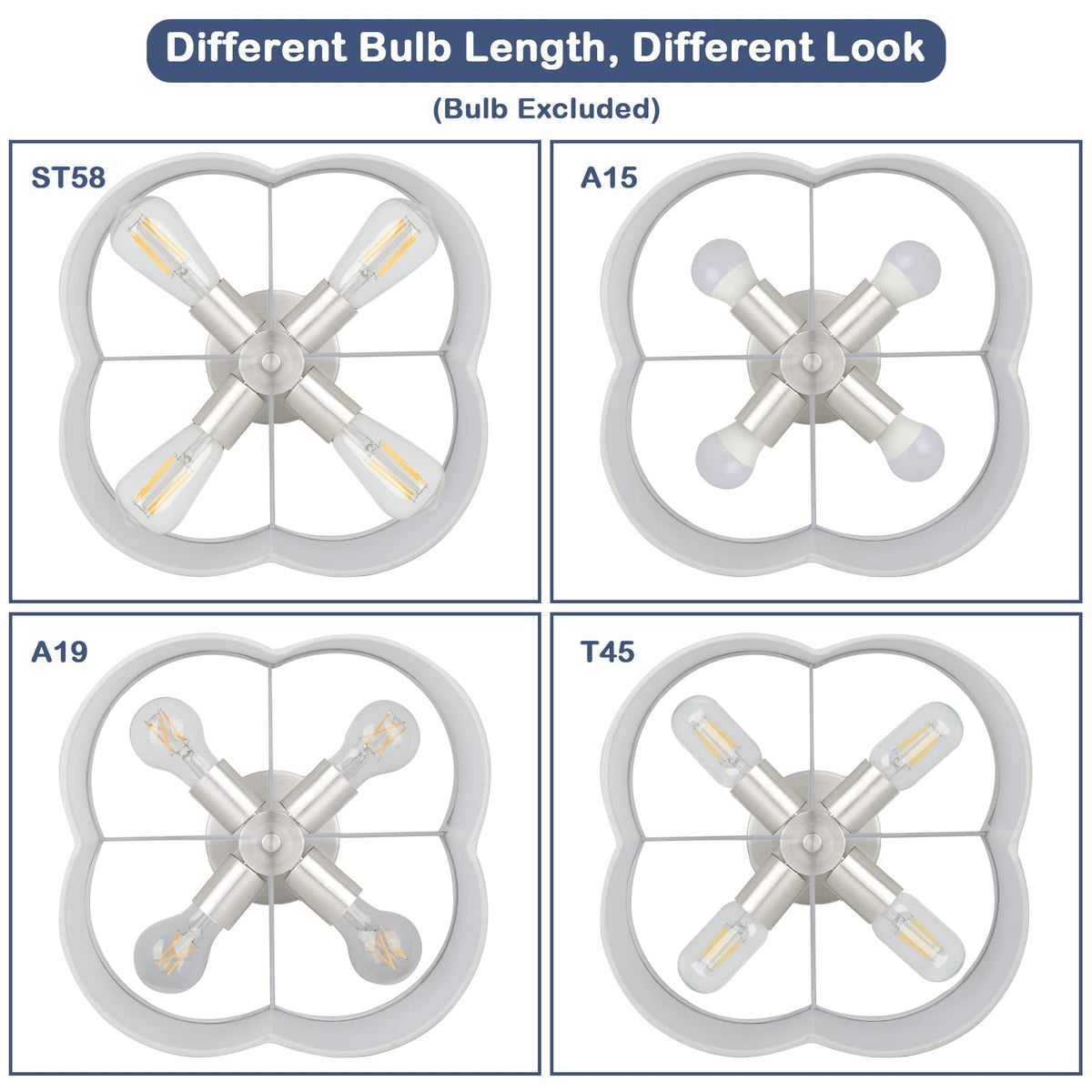 4-Light Semi Flush Mount Ceiling Light Fixture, Silver Modern Close To Ceiling Lamp With White Fabric Shade, Contemporary Bright