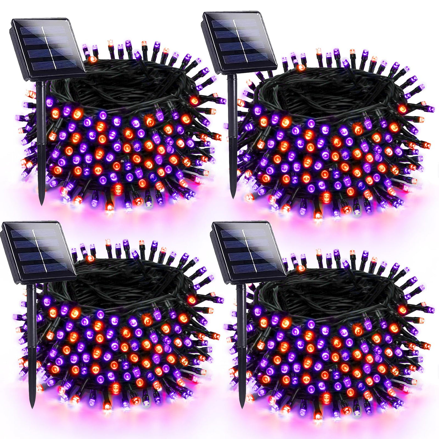 4 Pack 180Ft Halloween Solar Lights Outdoor Waterproof, 320Led Orange And Purple Solar String Lights Green Wire 8 Modes, Solar F