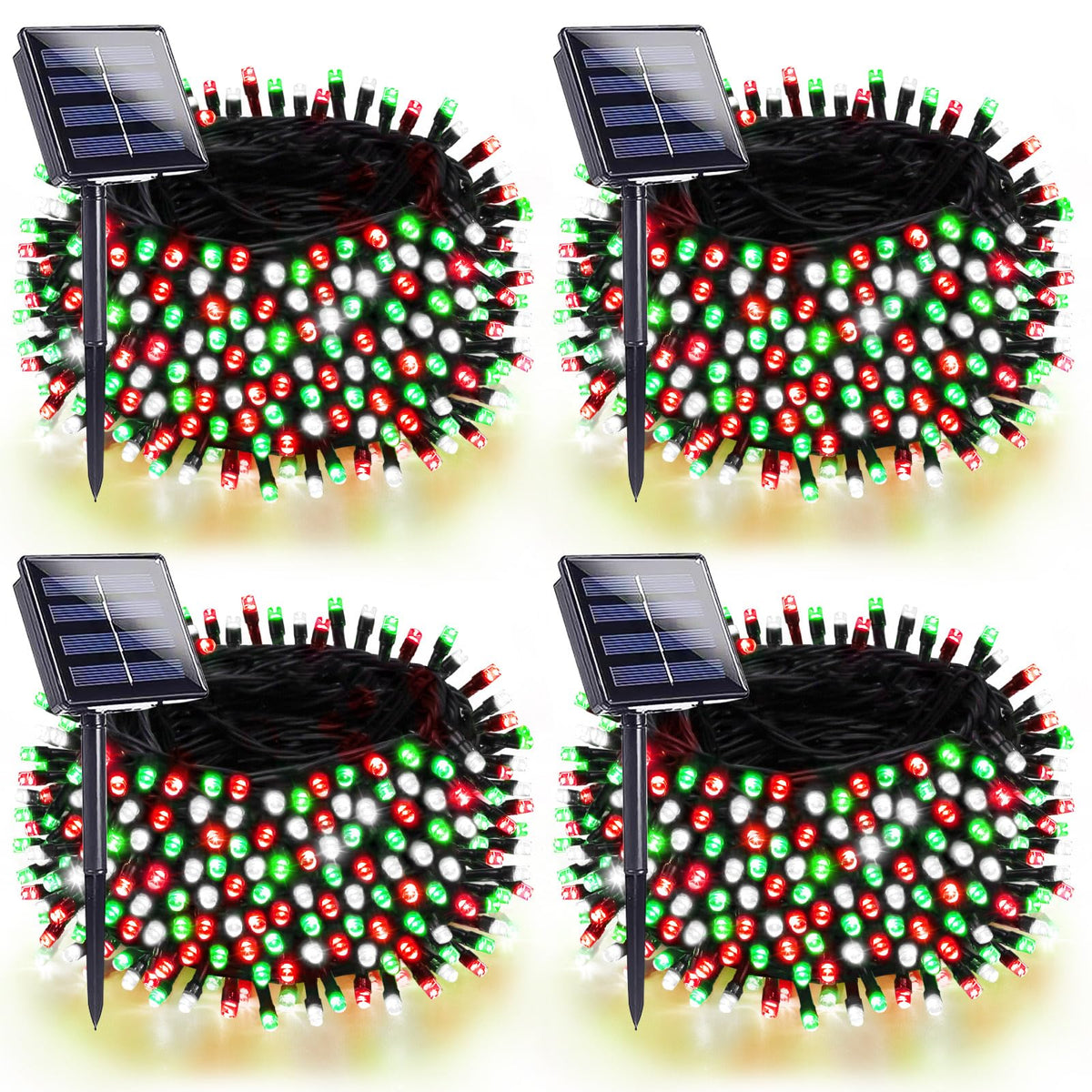 4 Pack 180Ft Solar Christmas Lights Outdoor Waterproof Super Bright 320 Led Solar String Lights With 8 Lighting Modes Green Wire Twinkle Tree Light For Outside Xmas Party Decor (Red White And Green)