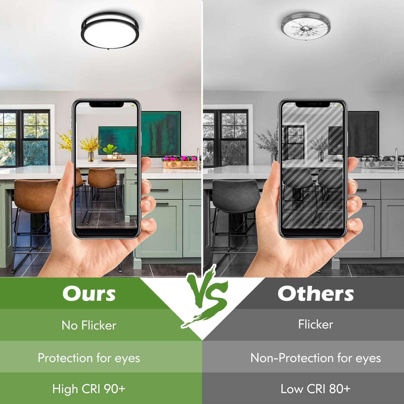 Q: How does the energy efficiency of these LED lights compare to traditional lighting?A: These 36W LED flush mount lights provide brightness equivalent to a traditional 450W incandescent bulb, significantly reducing electricity consumption. This energy-saving feature not only lowers your utility bills but also contributes to a more sustainable lifestyle.