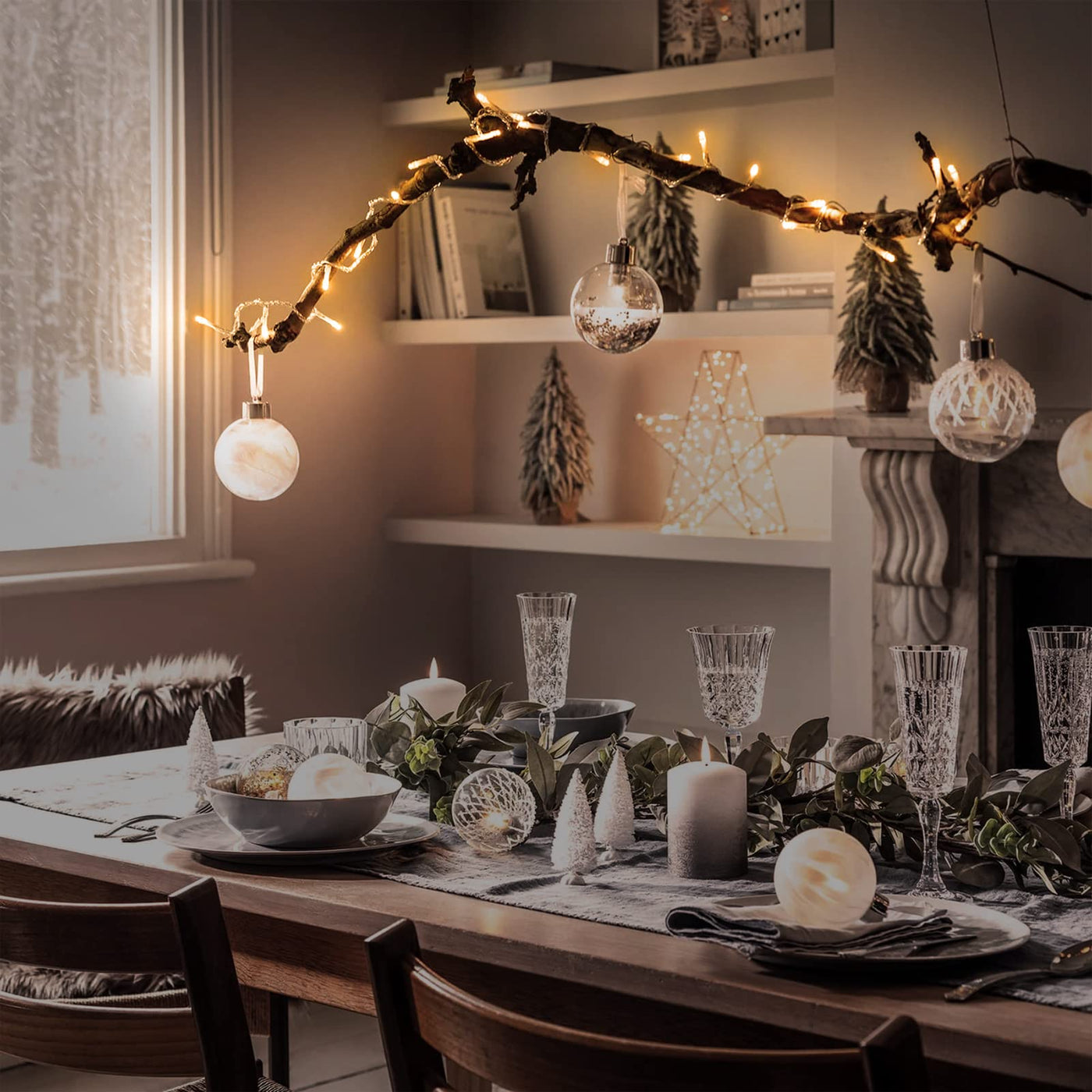 Q: What is the length of the string lights and the spacing between the bulbs?A: The string lights measure 16 feet in length with a 1-foot leading wire. The bulbs are spaced 4 inches apart, allowing for flexible and attractive placement in various decorations.
