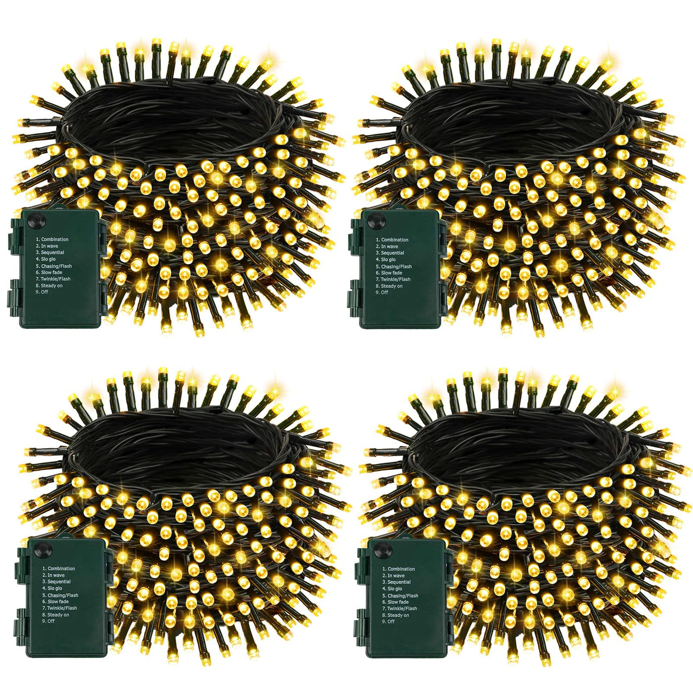 4 Pack Battery Operated Christmas Lights with Timer, 132FT 400 LED Waterproof Battery Twinkle Light, 8 Modes Green Wire Fairy Light for Indoor & Outdoor Bedroom Tree Christmas Decorations (Warm White)