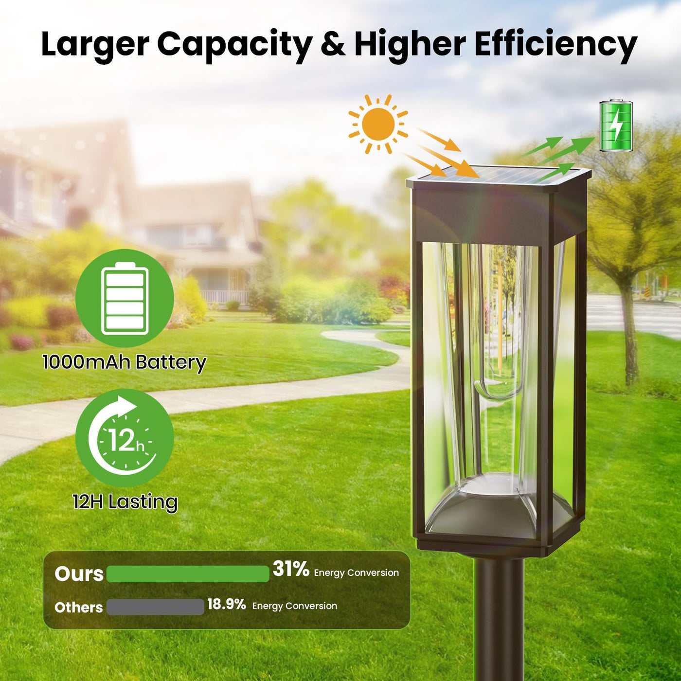 Q: How long do the solar lights stay lit after charging?A: When fully charged for 6-8 hours in sunlight, the BITPOTT solar lights can provide illumination for over 12 hours, making them ideal for all-night lighting.