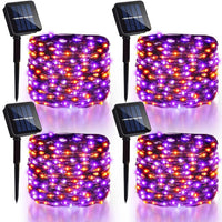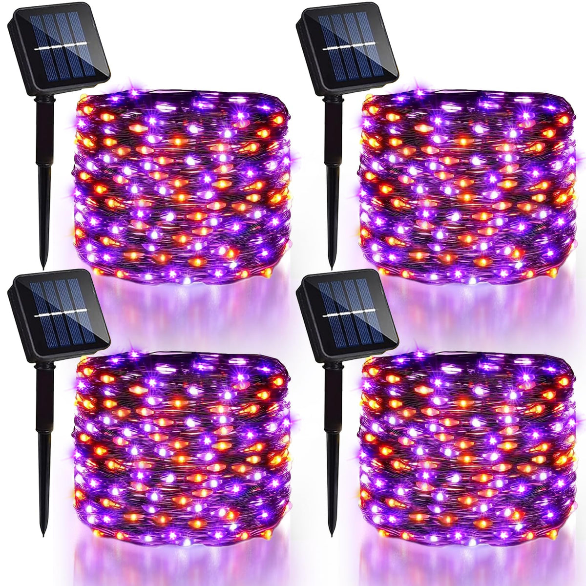 4 Pack Halloween Solar Fairy Lights 131.2Ft 400 Leds Outdoor Twinkle Lights With 8 Modes, Waterproof Silver Wire String Lights For Garden Patio Party Decorations (Orange Purple)