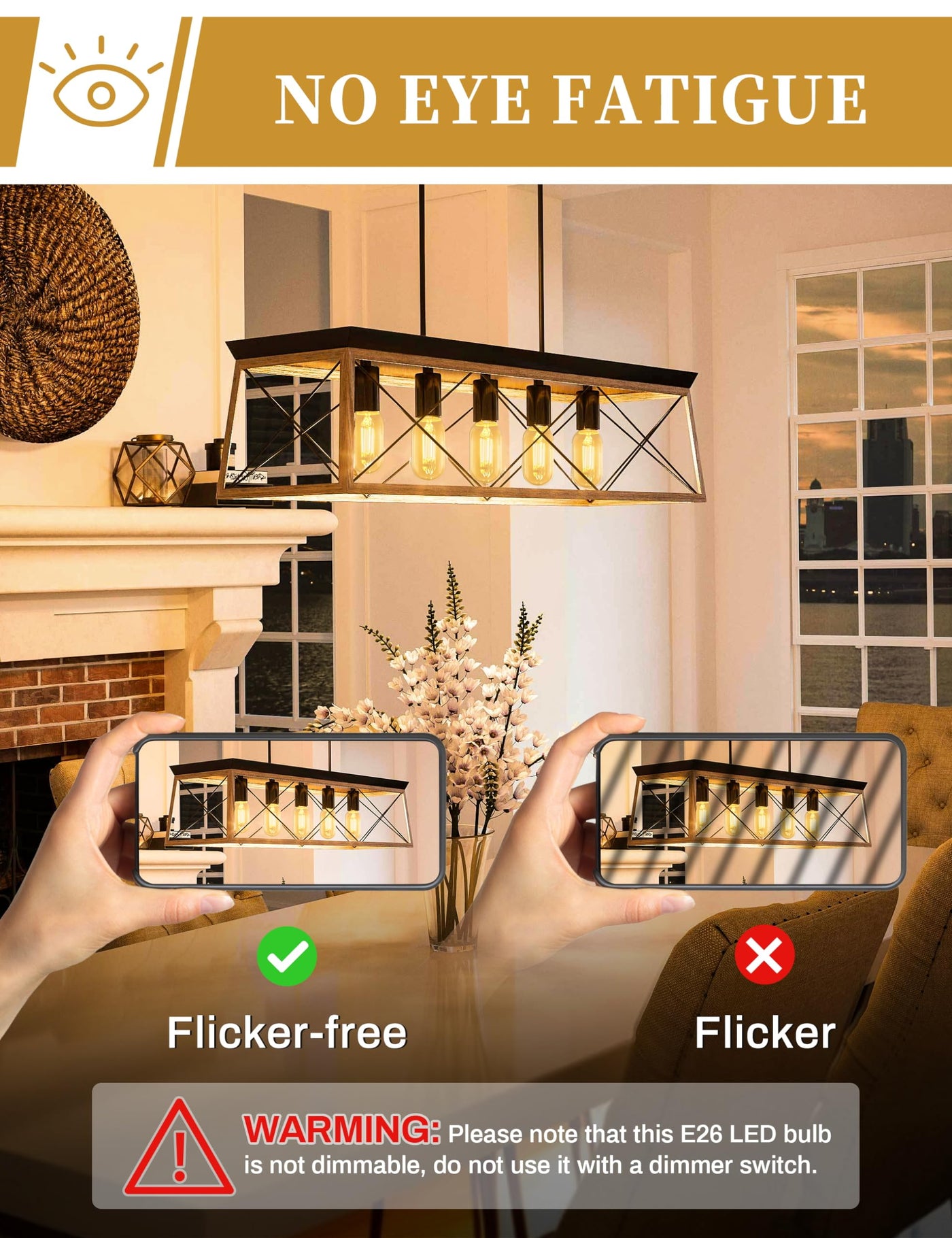 Q: Are these LED Edison Bulbs compatible with dimmer switches?A: No, these E26 LED Edison Bulbs are not dimmable. It is important to avoid using them with dimmer switches to ensure optimal performance.