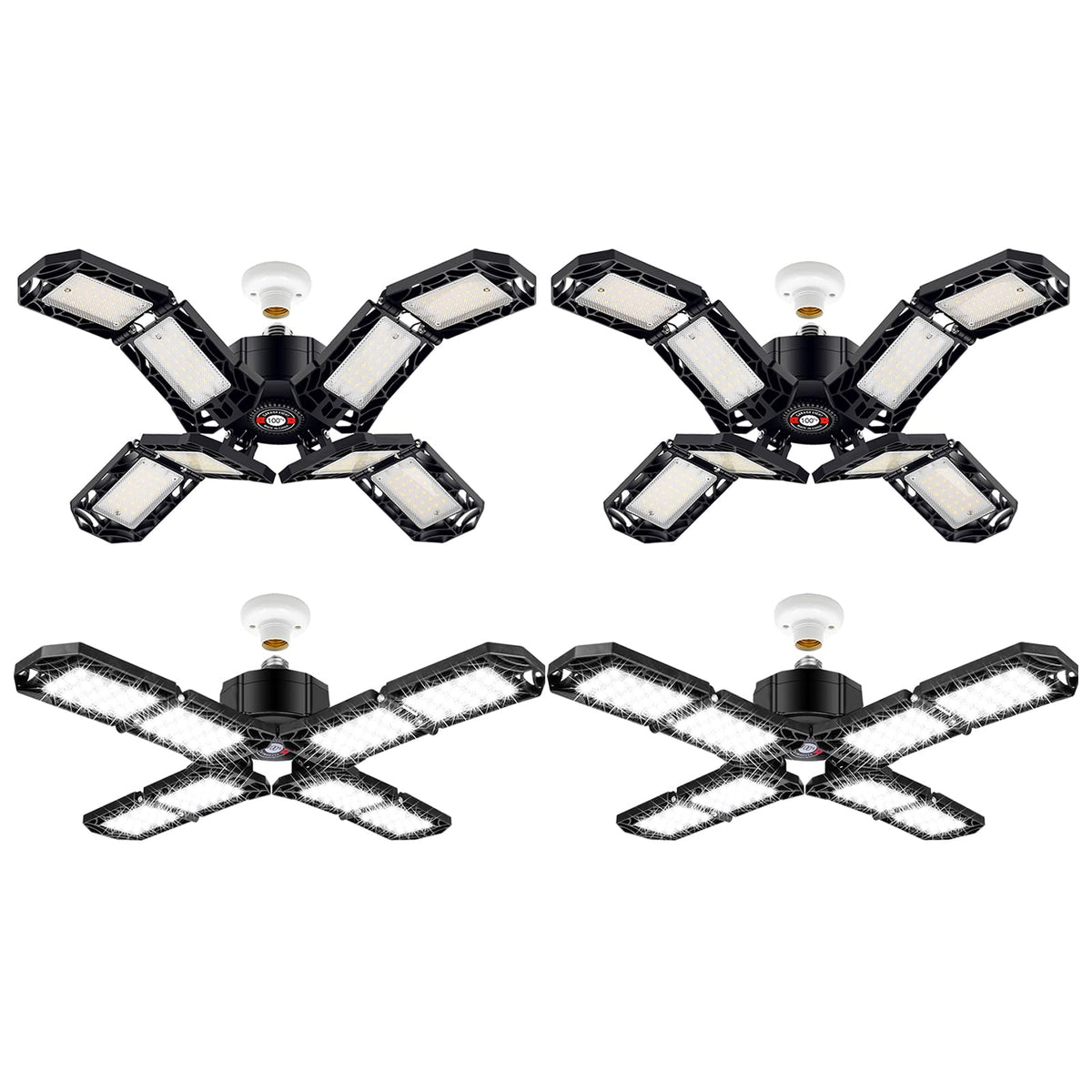 4 Pack Led Garage Light, Super Bright Screw In E26/E27 Ceiling Shop Work Lamp, 200W 20000 Lumen Deformable Basement Bulb Fixture