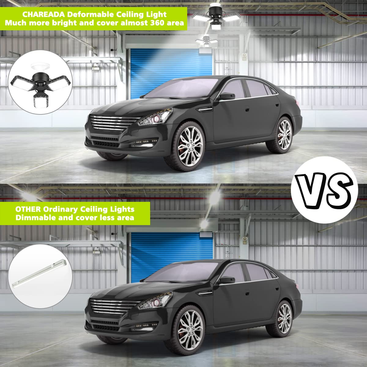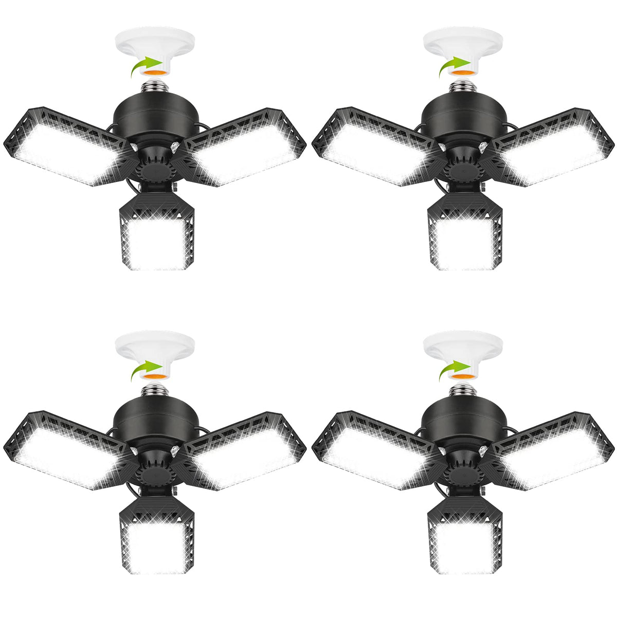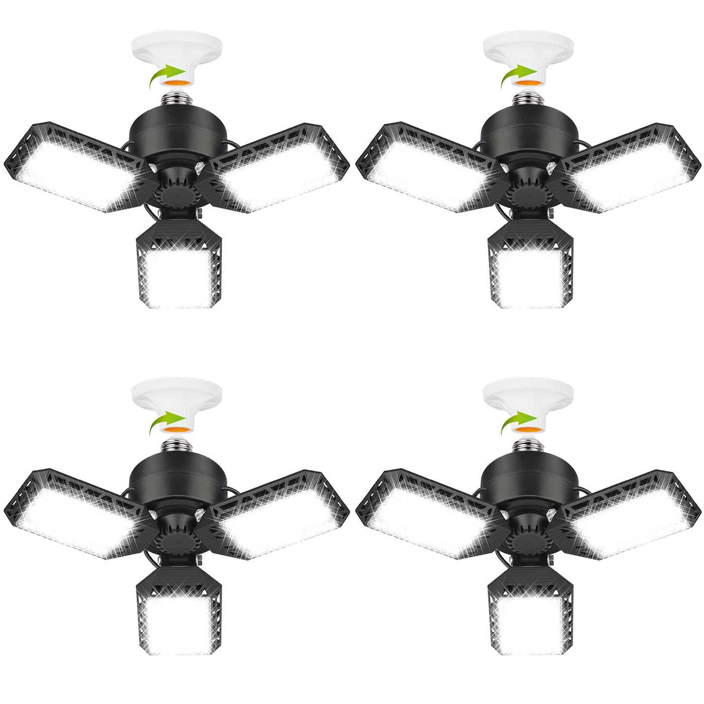 CHAREADA 4 Pack LED Garage Lights, 60W Deformable Ceiling Light, 8000 lm, 3 Adjustable Panels for Warehouse, Workshop, Barn, and Yard