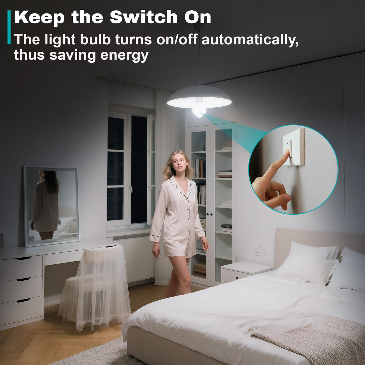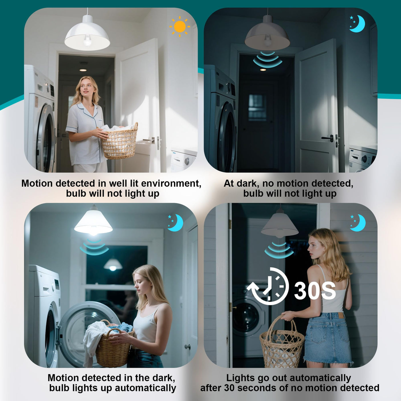 4-Pack Motion Sensor Light Bulbs, 12W(100W Equivalent) E26 A19 Security Led Bulb Outdoor/Indoor, Motion Activated Dusk To Dawn B
