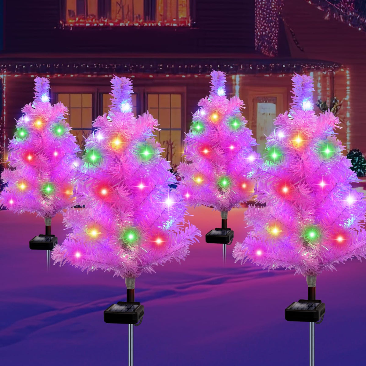 4 Pack Pink Solar Christmas Tree Garden Stake Light Waterproof Outdoor Christmas Decorations 2 Modes Solar Christmas Lights For Yard Front Porch Pathway Gave Garden Decor