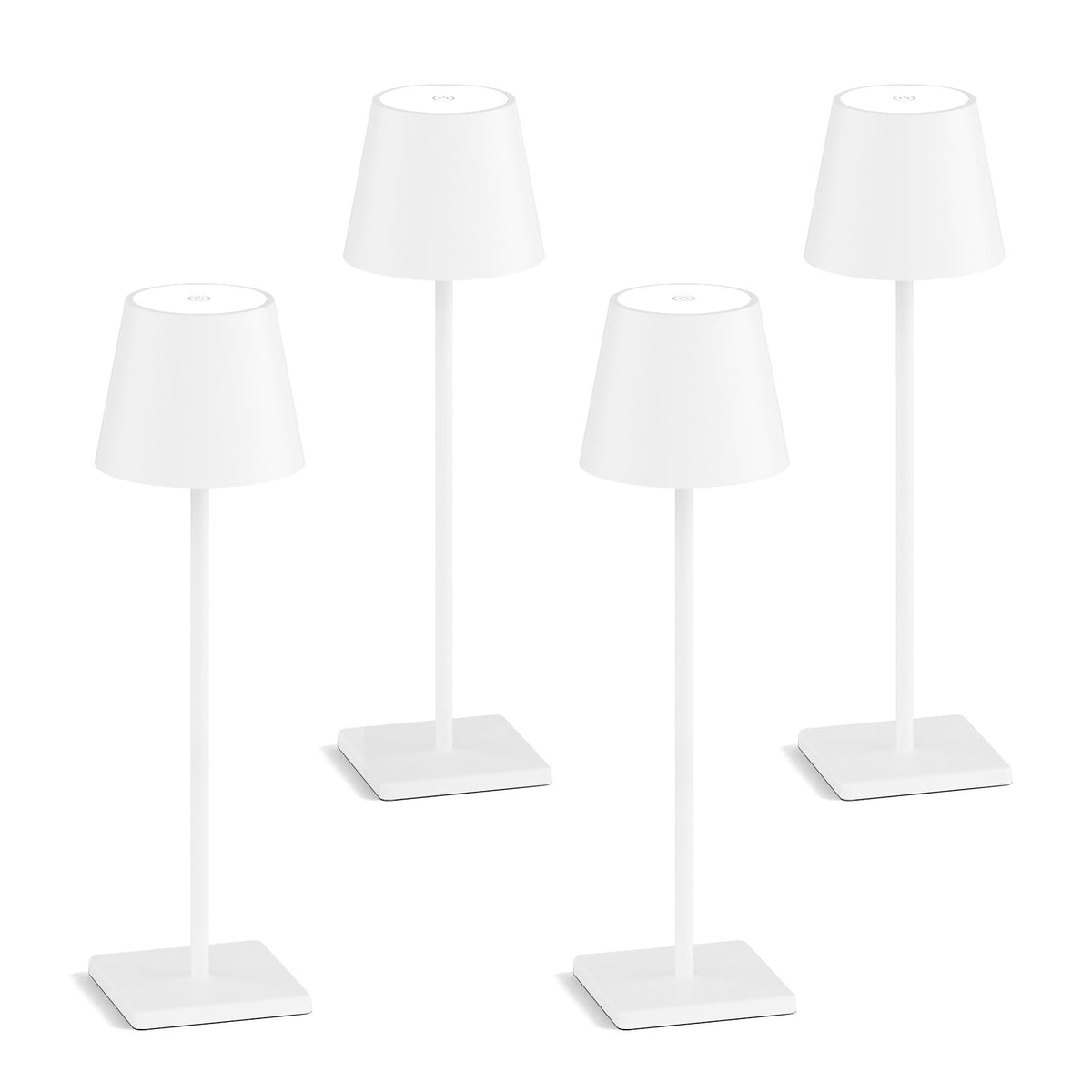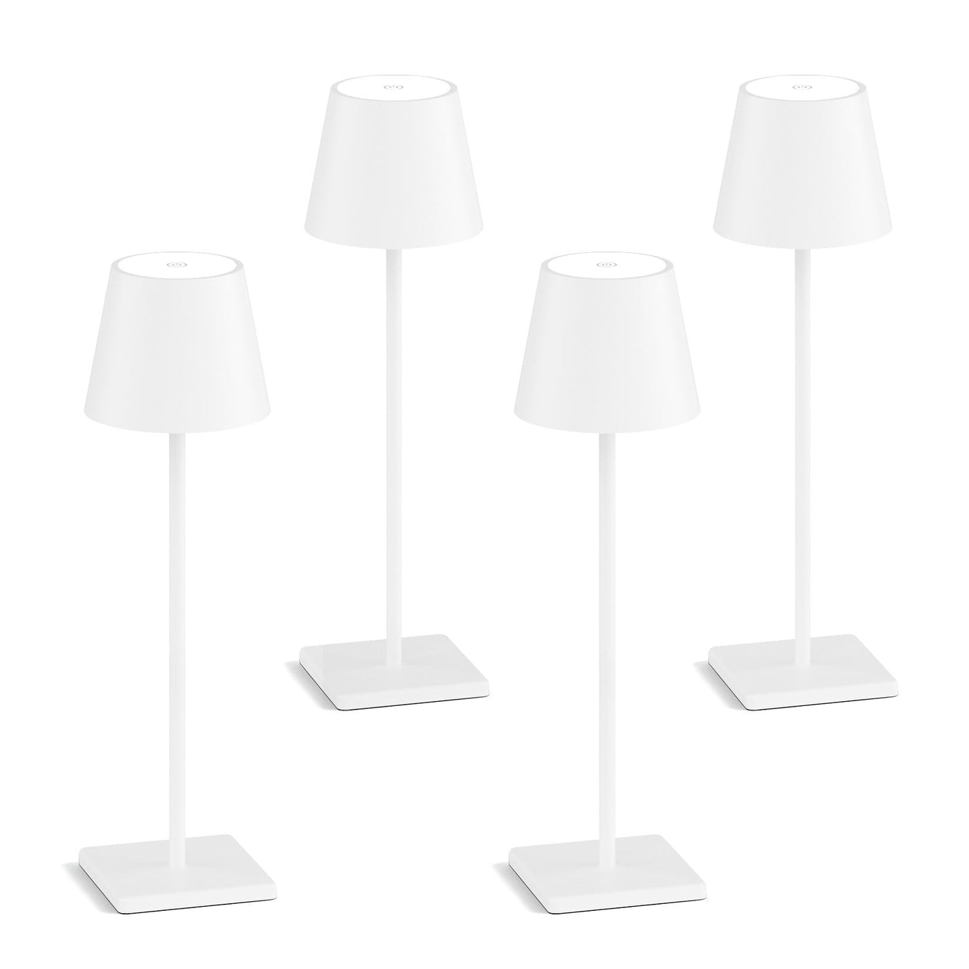 Q: How long does the battery last on a full charge?A: The 4-Pack Rechargeable Table Lamps feature a built-in 6000 mAh battery that can last between 16 to 30 hours on a full charge, depending on the brightness level used.