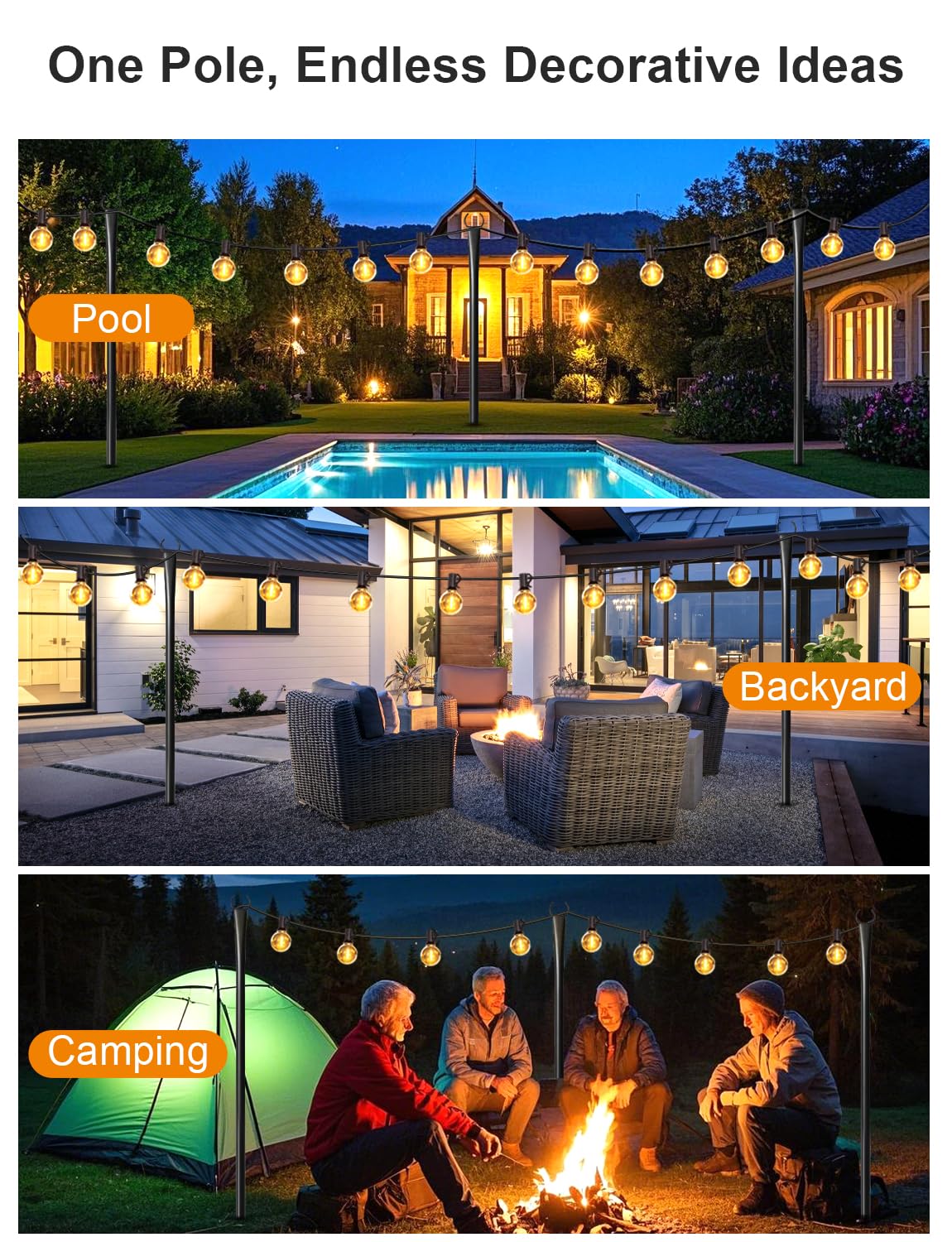 Q: Can I use these poles for hanging other decorations besides string lights?A: Absolutely! These poles are versatile and can also be used to hang lanterns, banners, or other outdoor decor items, enhancing your patio or garden aesthetics.