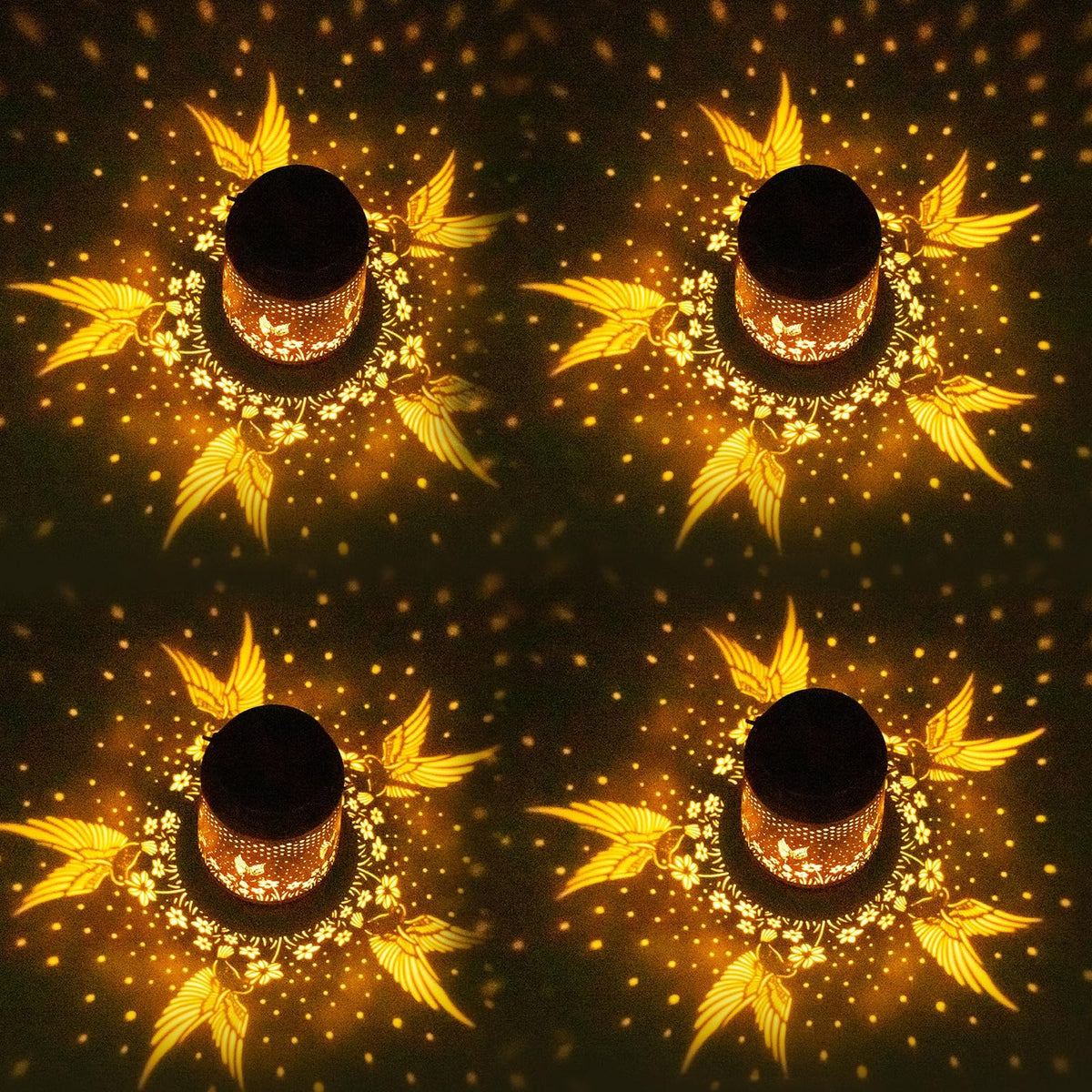 4 Packs Solar Lanterns Outdoor Hanging Lantern Lights, 4 Hummingbirds Hollowed-Out Metal Decor Lantern, Waterproof Led Decorativ