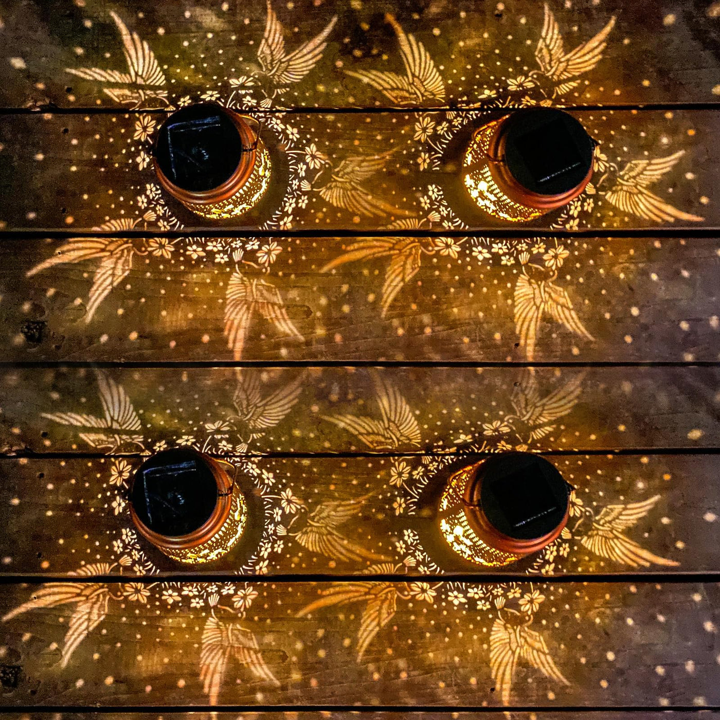Gorgeous & Imaginative Garden Decor - Fusion The Retro Gold, Copper Of Exteriors And Irregular Pattern Inside, At Darkness, The Solar Lantern Casting A Bright, Warm Light With Hummingbird Pattern, Which Looks Like A Hummingbird Flying Symbolizes Change.