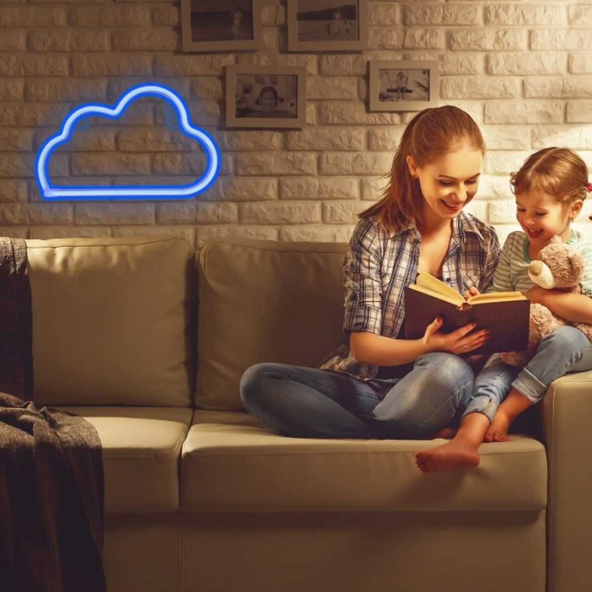 4 Pcs LEDs Decorative Neon Night Signs, Hanging Lighted Up Neon Sign for Bedroom Room Decor Neon Lights Leds Cloud Signs Light S