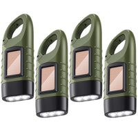 4 Pieces Hand Crank Solar Powered Flashlight Led Rechargeable Flashlight Survival Emergency Hand Crank Lantern Snap Carabiner Torch For Outdoor Sports Camping Hiking
