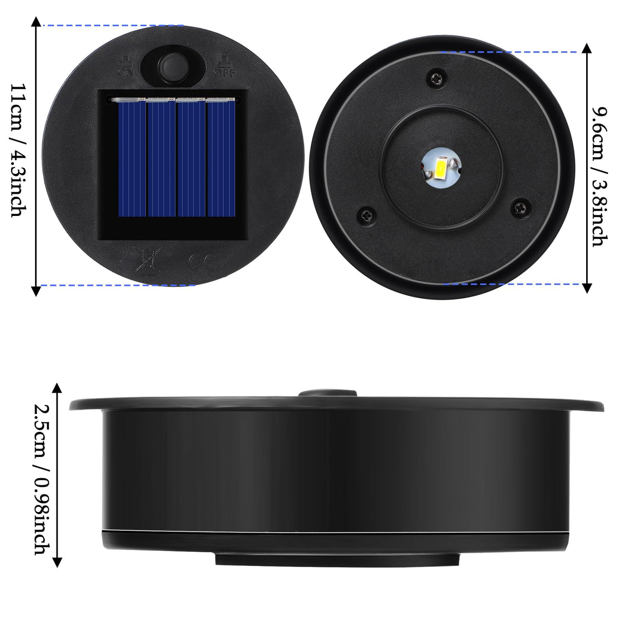 Q: What is the size of the replacement solar light tops?A: The replacement solar light tops have an outer ring diameter of 11 cm (4.3 inches) and an inner ring diameter of 9.6 cm (3.8 inches), with a height of 2.5 cm (0.98 inches). They are designed to fit any lantern that matches these size specifications.