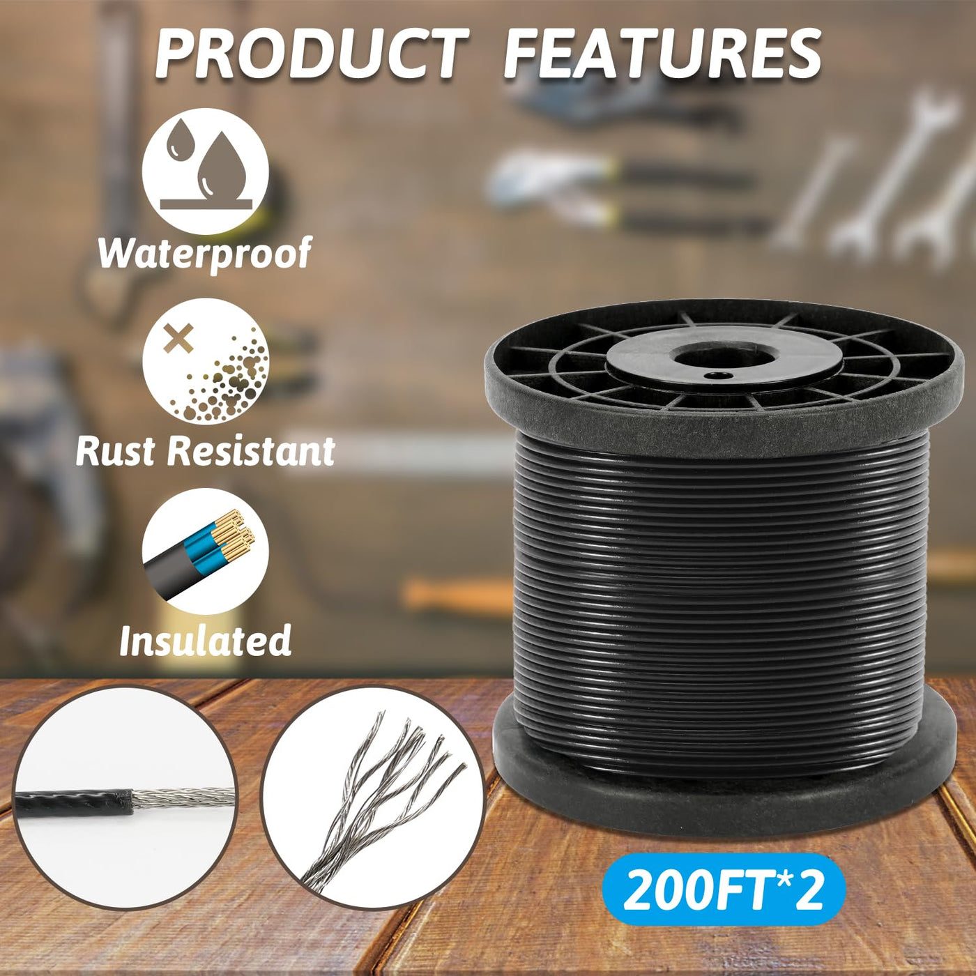 400 Ft String Light Hanging Kit Outdoor, Nylon Coated Stainless Steel 304 Wire Rope, String Light Kit Included Enough Accessories, Guide Wire For Outdoor String Lights, Patio Lights, Camping Lights