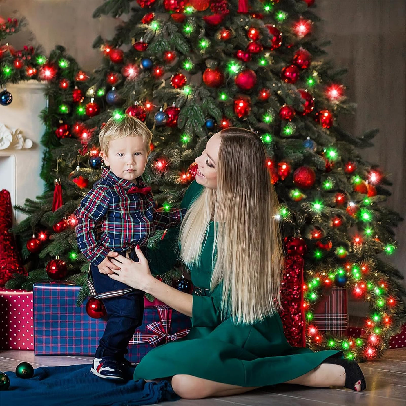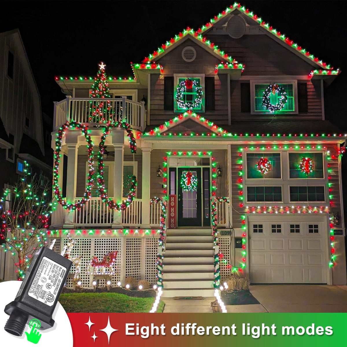 400 Led Christmas Lights Outdoor, 132Ft Red And Green String Lights For Bedroom Clear Wire, 8 Modes Plug In Waterproof Fairy Str