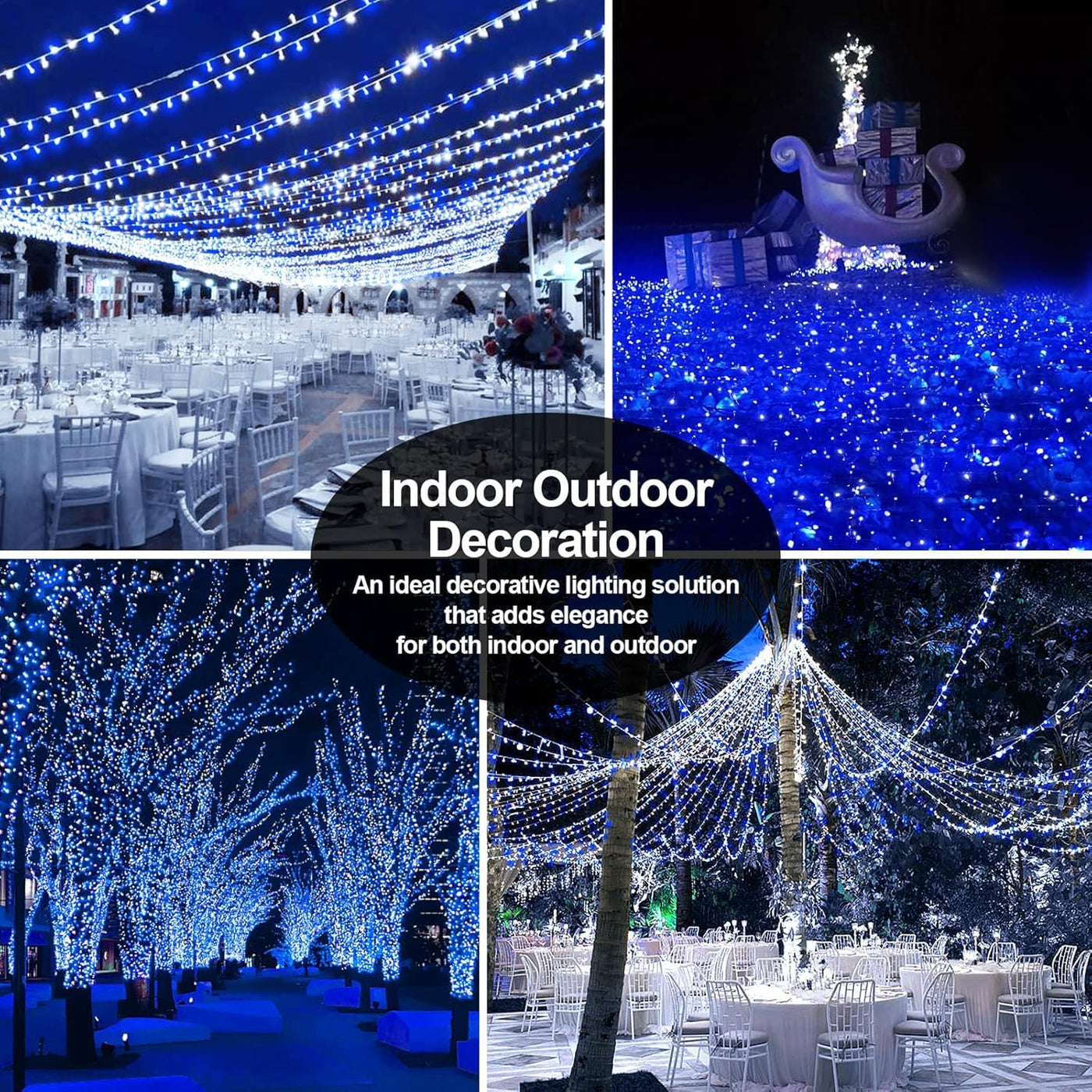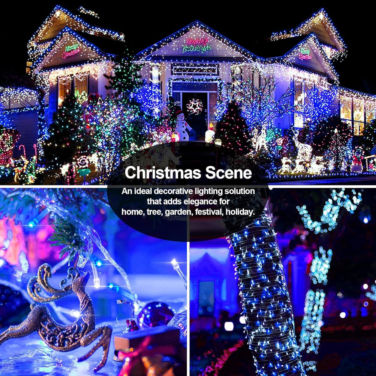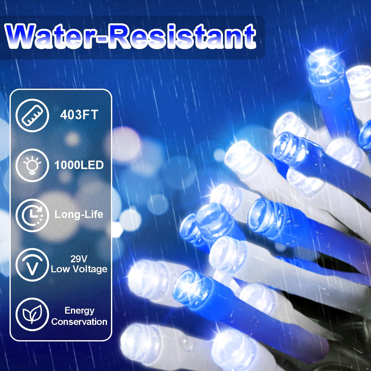 403 Ft 1000 Led Christmas Lights Outdoor Decorations Super Long Fairy Lights Waterproof 8 Modes Timer Clear Wire String Lights For Outside House Tree Patio Yard Wedding Party Holiday-Blue&White