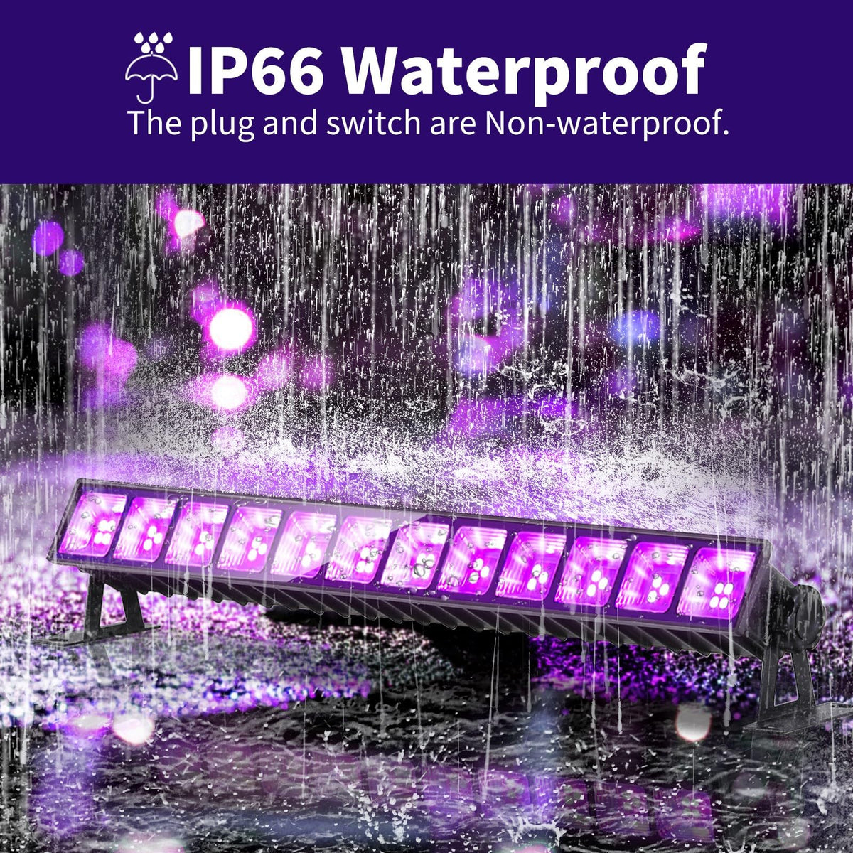 Q: Is the black light bar waterproof?A: Yes, the LED black light bar has an IP66 waterproof rating, ensuring reliable performance in various weather conditions, both indoors and outdoors.