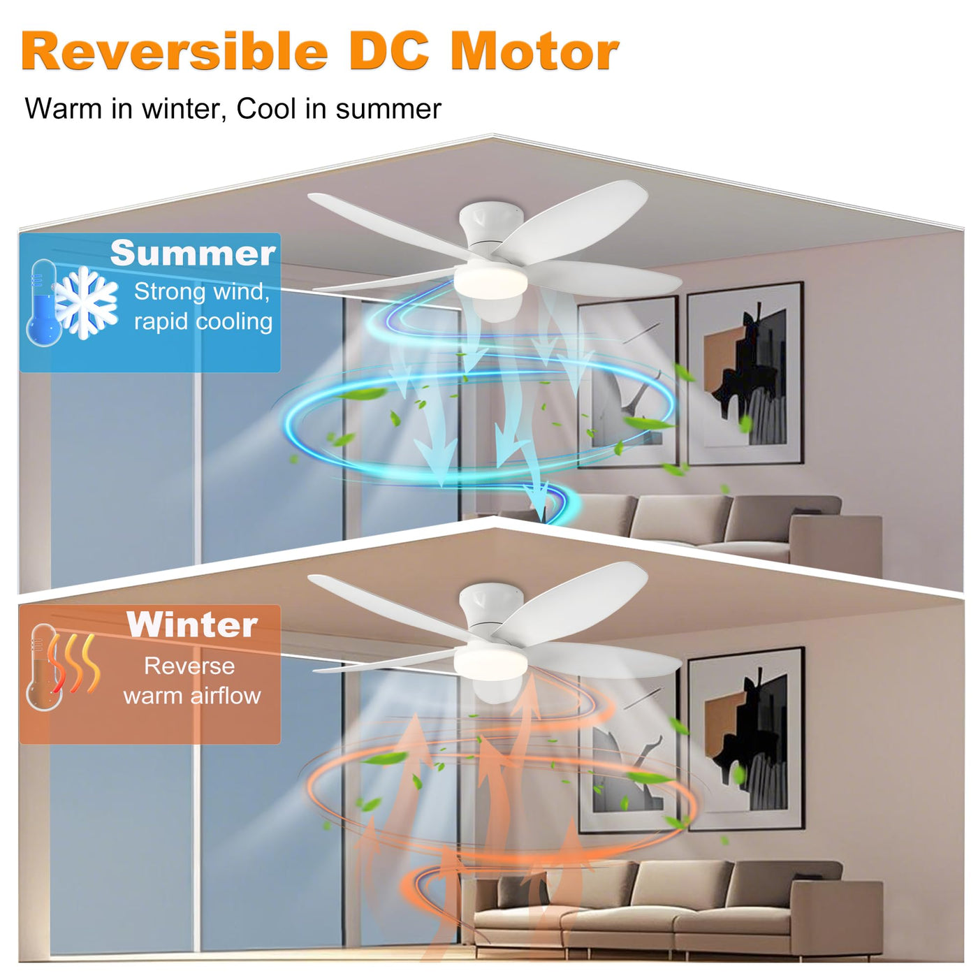 Upgrade Your Comfort with AYSEMOs 42 Smart Ceiling Fan with Lights Transform your living space with the AYSEMO Low Profile Flush Mount Ceiling Fan-a fusion of innovation and elegance. Designed for rooms with low ceilings, this 42-inch ceiling fan features a flush mount design that blends seamlessly into bedrooms, living rooms, and covered outdoor patios (note: not waterproof). Intelligent Control at Your Fingertips Command your environment effortlessly via remote control. Adjust 6 wind speeds, dimmable LED lighting (10%-100% brightness), and 3 color temperatures (3000K-6000K) to match any mood. The smart memory function saves your preferences, while the reversible DC motor ensures whisper-quiet operation-perfect for creating a peaceful bedroom retreat or a breezy patio oasis. Effortless Installation & Powerful Performance Our snap-in blade design makes setup tool-free and quick. The aerodynamic blades generate robust yet quiet airflow, enhanced by the energy-efficient DC motor. Reverse the direction seasonally: cool your home in summer or circulate warmth in winter. Built for Versatility & Durability Crafted for indoor/outdoor versatility, this dimmable LED ceiling fan excels in bedrooms, kitchens, offices, and covered areas like gazebos. The sleek black finish adds modern flair, backed by a 1-year warranty for worry-free ownership.