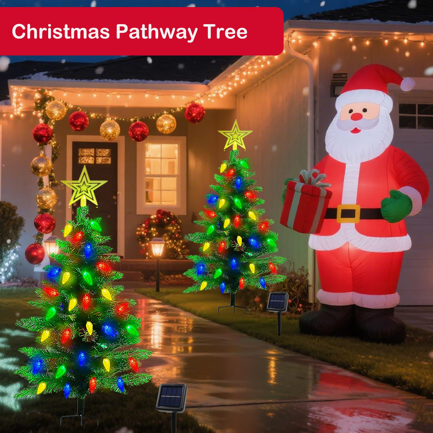 4Ft Solar Christmas Tree Christmas Decorations Outdoor 250 Branch Small Xmas Tree With 100 Led C6 Lights Waterproof Solar Christmas Lights For Porch Pathway Yard Cemetery 1 Pack