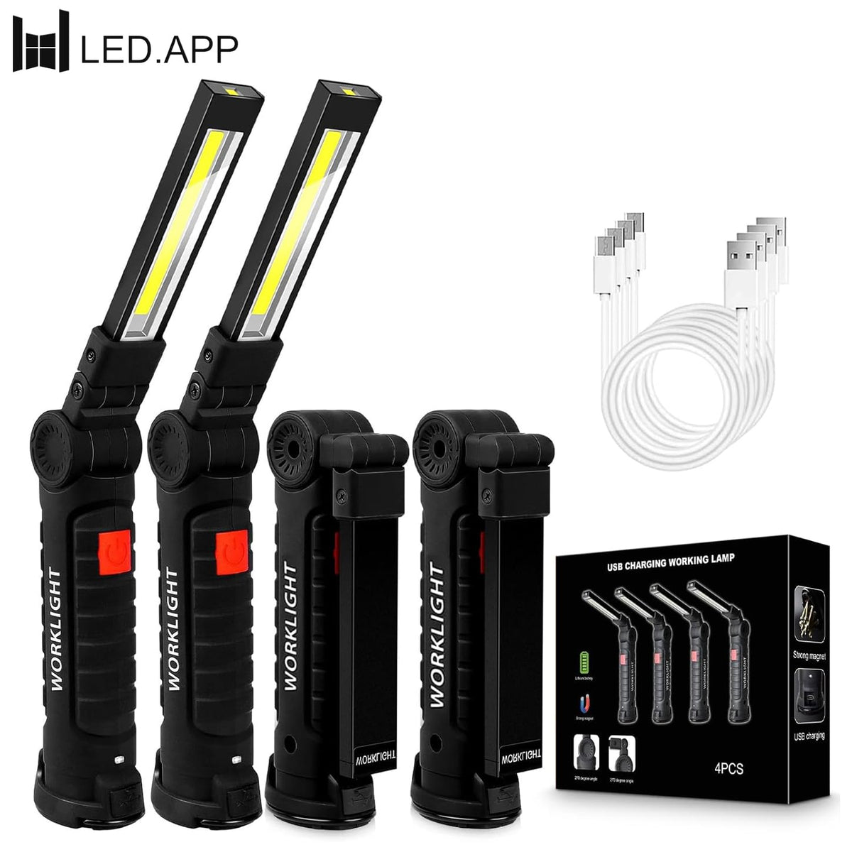 4Pack LED Work Lights, USB Rechargeable COB Light with Magnetic Base 360Rotate and 5 Modes, Folding Flashlight Inspection Light