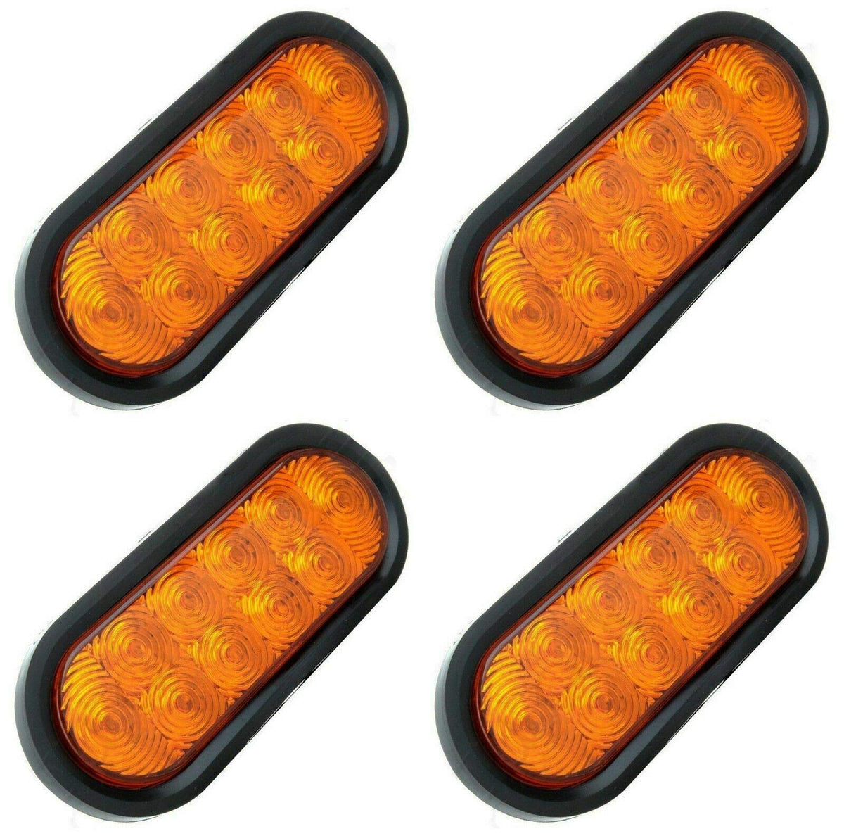 4Pc 6" Inch Oval Amber Led Trailer Tail Lights [Dot Certified] [Grommet & Plug Included ] [Ip67 Waterproof] Park Turn Trailer Lights For Rv Trucks