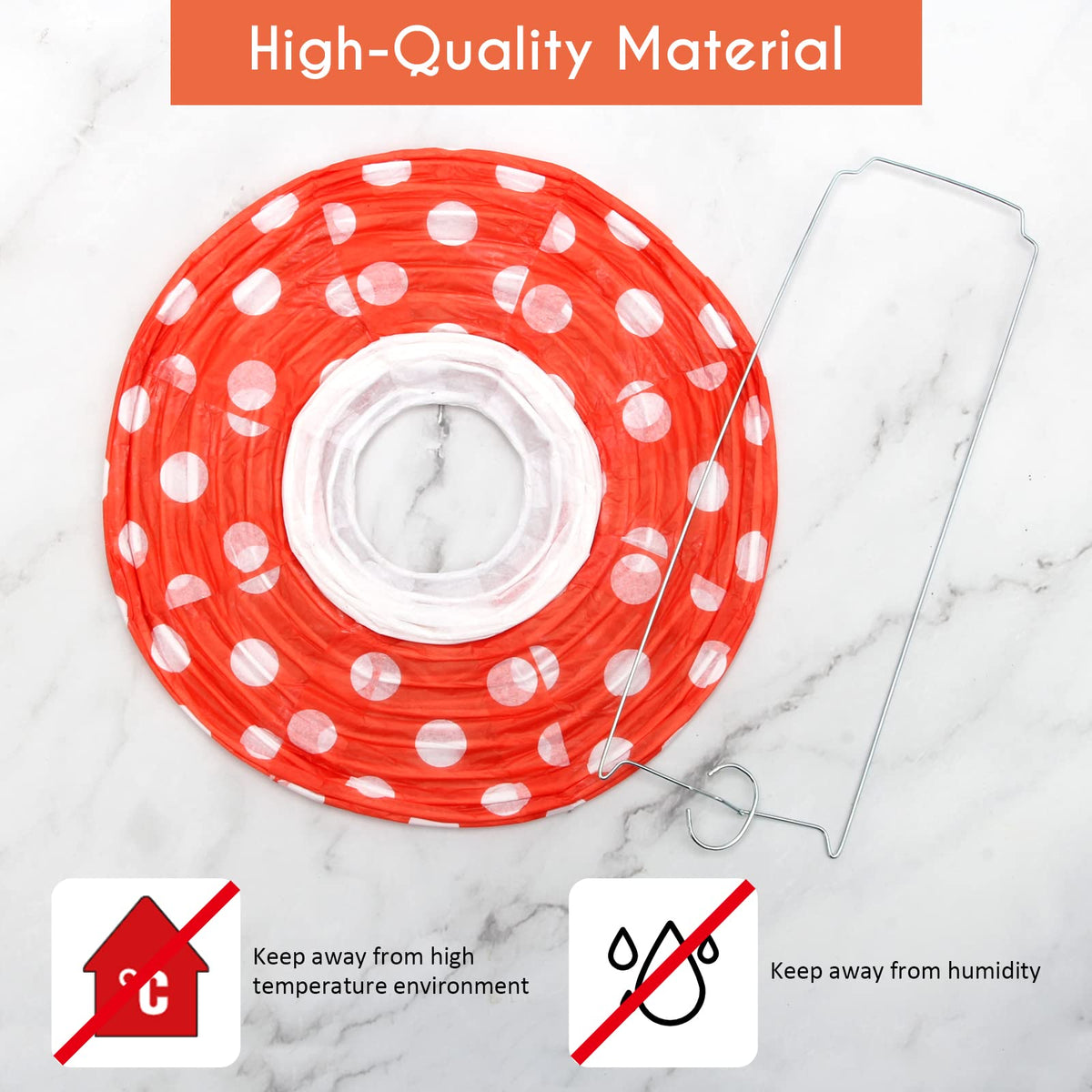 1. Product Specification --Color: orange --Size: 8 inch & 12 inch --Material: rice paper material 2. Package Include --2 Pack 8-inch and 2 Pack 12-inch mushroom paper lantern 3. Product Feature --The mushroom shaped paper lanterns is made of rice paper, with high quality and excellent workmanship, and can be used for a long time. --The large paper lantern is easy to use and can be reused. The detailed steps are shown in the figure. --The mini mushroom paper lantern can be widely used in forest and fairyland theme parties, adding a strong natural atmosphere to the theme parties.