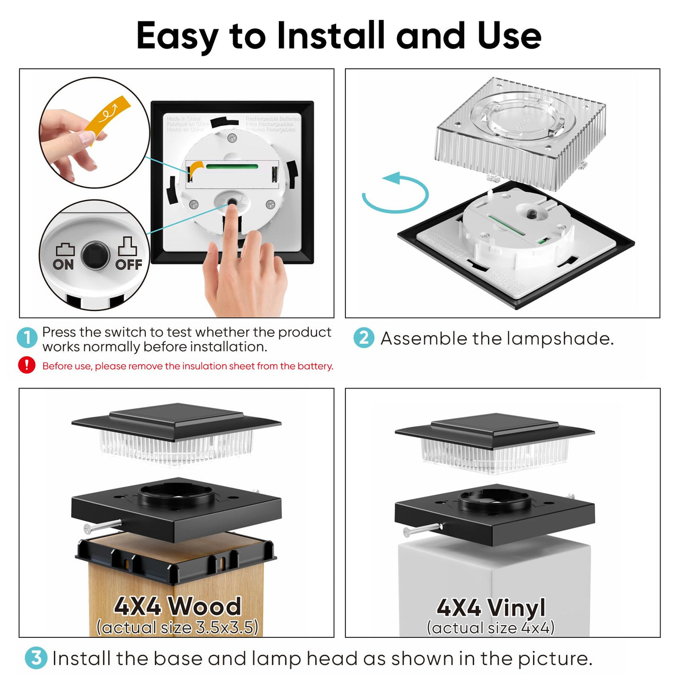 Enhance your outdoor space with YITCOE solar post cap lights. Featuring 2 lighting modes (warm & cool white), these solar post lights offer a cozy ambiance and bright illumination. Equipped with 16 LEDs, the fence post solar lights cast beautiful decorative patterns, adding charm to your garden. Easy to install on 4x4 posts, these deck lights solar powered are waterproof, durable, and provide up to 12 hours of lighting after 6-8 hours of sun. Perfect for adding elegance and functionality to your yard, patio, or deck.