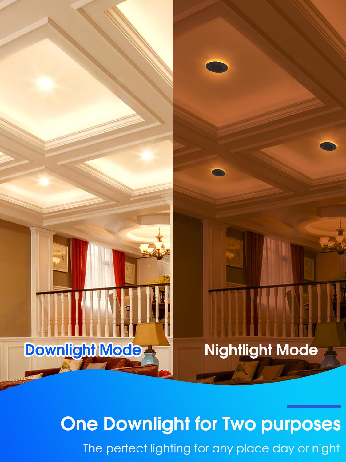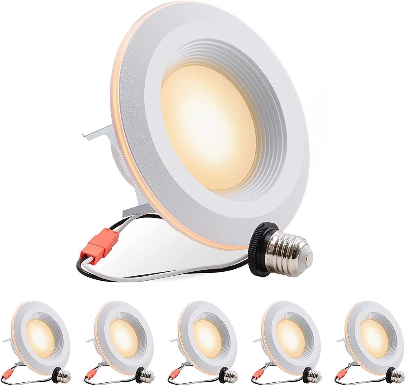 6 Inch LED Recessed Downlight, Dimmable, 9W=85W, 3000K Warm White, 700 LM, Damp Rated, Simple Retrofit Installation with Nightlight Feature, ETL Listed