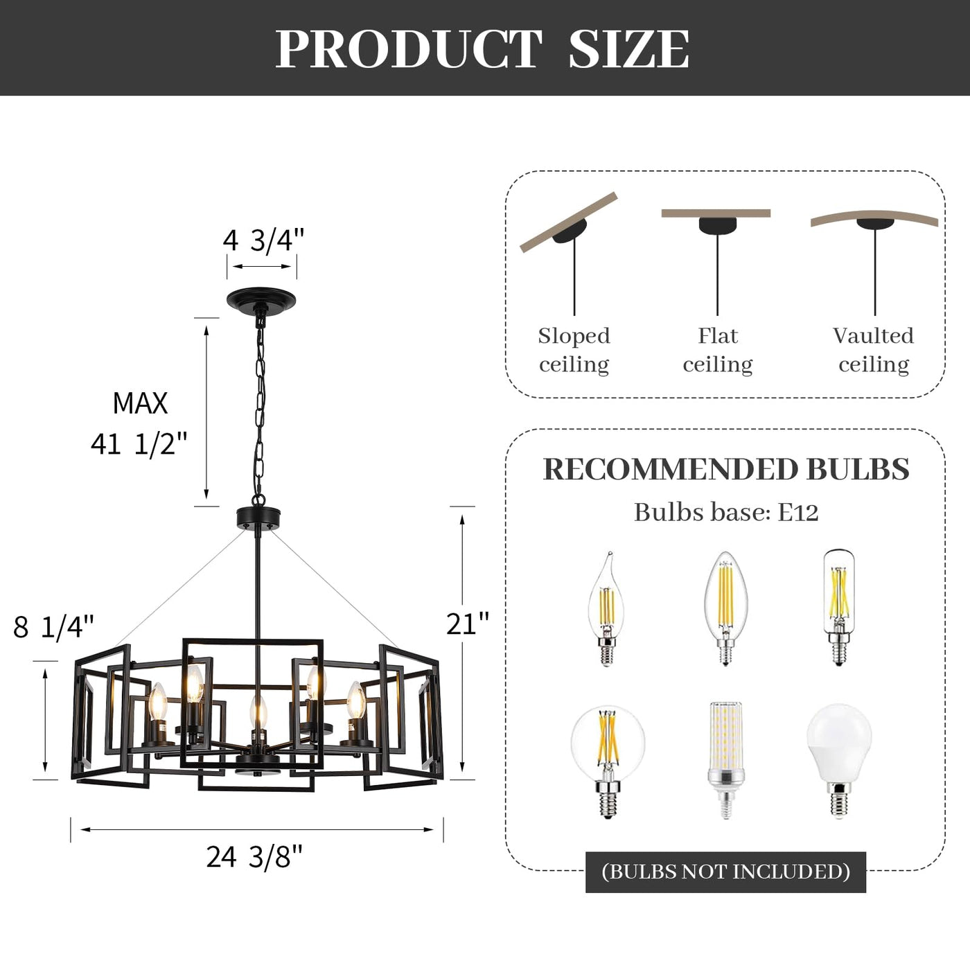 5-Light Black Geometric Chandelier,Height Adjustable Industrial Chandelier for Dining Room,Modern Farmhouse Chandelier Light Fixture over Table,for Bedroom,Living Room,Entryway,Bulbs Not Included