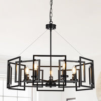5-Light Black Geometric Chandelier,Height Adjustable Industrial Chandelier For Dining Room,Modern Farmhouse Chandelier Light Fix