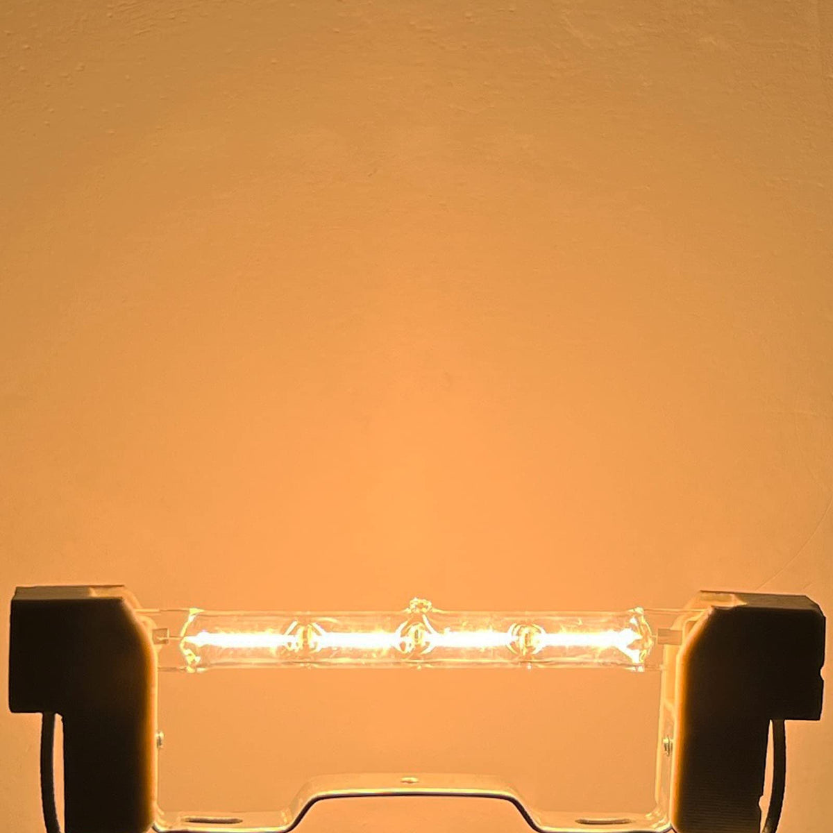 Guide on Buying the Correct Light Bulbs: Base, Shape and Dimensions Base: R7s Double Ended Shape: T3 J Type J118 Diameter: 0.51 inches (13mm) Length: 4.65 inches(118mm). Lighting Features Power:300 Watts Luminous Flux:4000 Lumens Voltage:110V/120V/130V AC Beam Angle: 360 Material: Glass Color Rendering Index (CRI): 100 for vivid and enhanced color Instant On. No Mercury. Lifetime: 2,000 hours (1.8 years with average of 3 hours use per day) CE and RoHS certified Pack of 5 Working with Halogen Dimmers These halogen light bulbs are dimmable using the dimmers designed for incandescent & halogen light bulbs. All incandescent and halogen light bulbs are dimmable using traditional dimmers, as these dimmers simply adjusts the voltage level for dimming. Dimming using LED only dimmers will result in incompatibility, as LED dimmers work very differently. Please check the compatibility of your dimmer switch or light fixture prior to purchase.