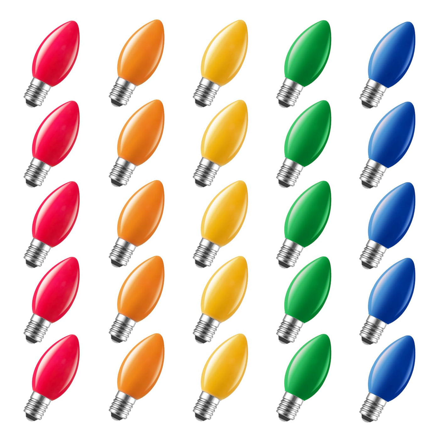50 Pack C7 Led Christmas Lights Bulb Replacement Light Bulbs Multicolor Commercial Light Bulbs, C7/E12 Candelabra Base Fits C7 C