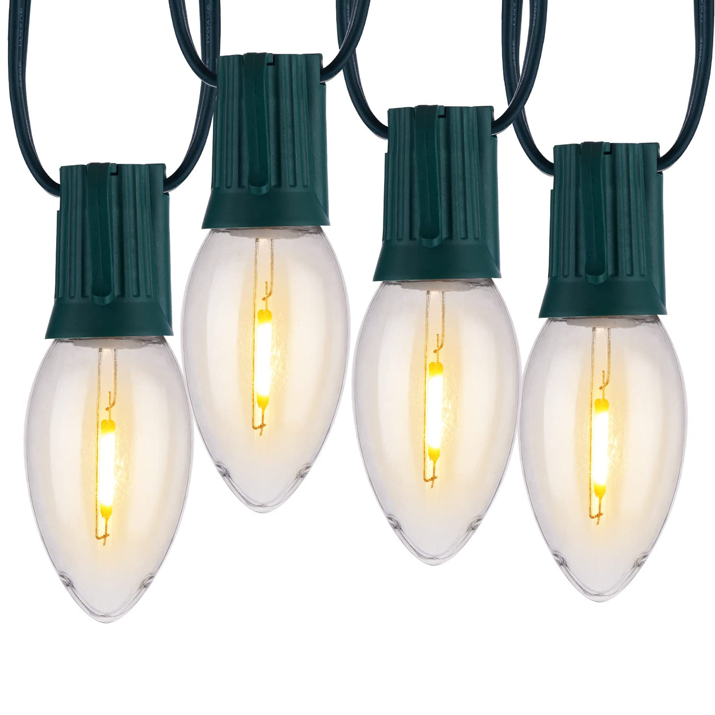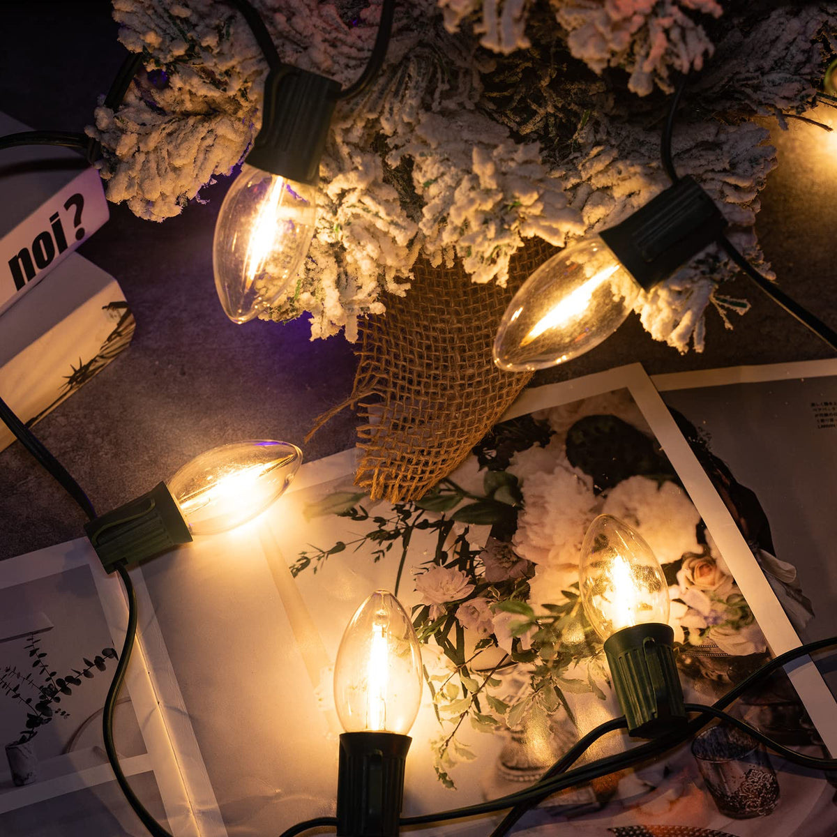 Q: How do I install the C7 string lights?A: The C7 string lights are easy to install, featuring small clips on the sockets that allow you to hang them securely on tree branches, roofs, or other surfaces.