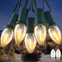 Q: Are the bulbs easy to replace if one goes out?A: Yes, the C7 LED bulbs are designed for easy replacement. If one bulb doesn't light up, it won't affect the rest of the strand, ensuring your festive decorations remain bright and cheerful.