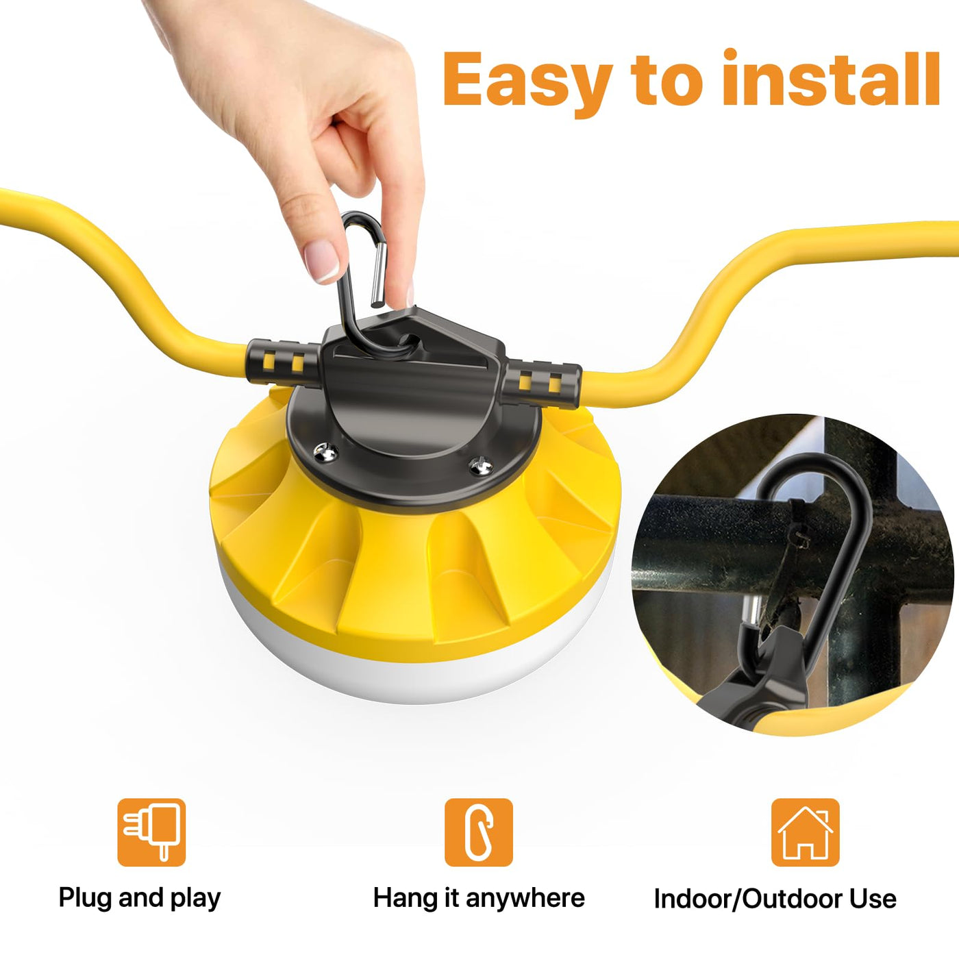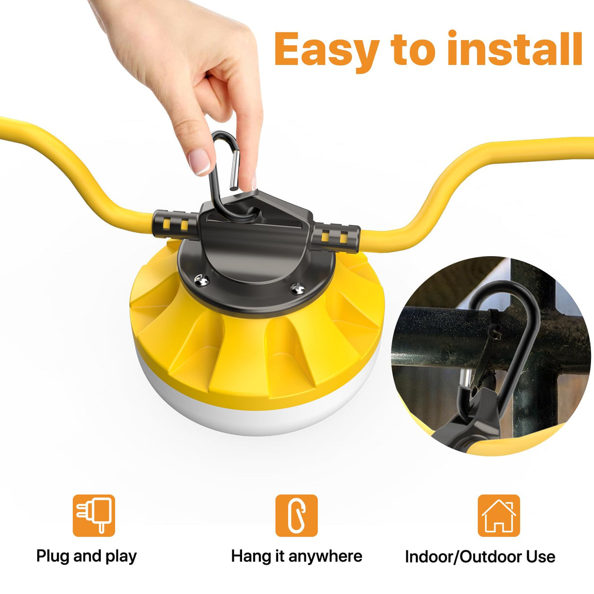 Q: Can the 50FT Construction String Lights be used in tight spaces?A: Yes, these string lights are versatile and can be used in tight spaces such as attics, basements, and crawlspaces. Their flexible design and included hooks allow for easy installation in challenging areas.