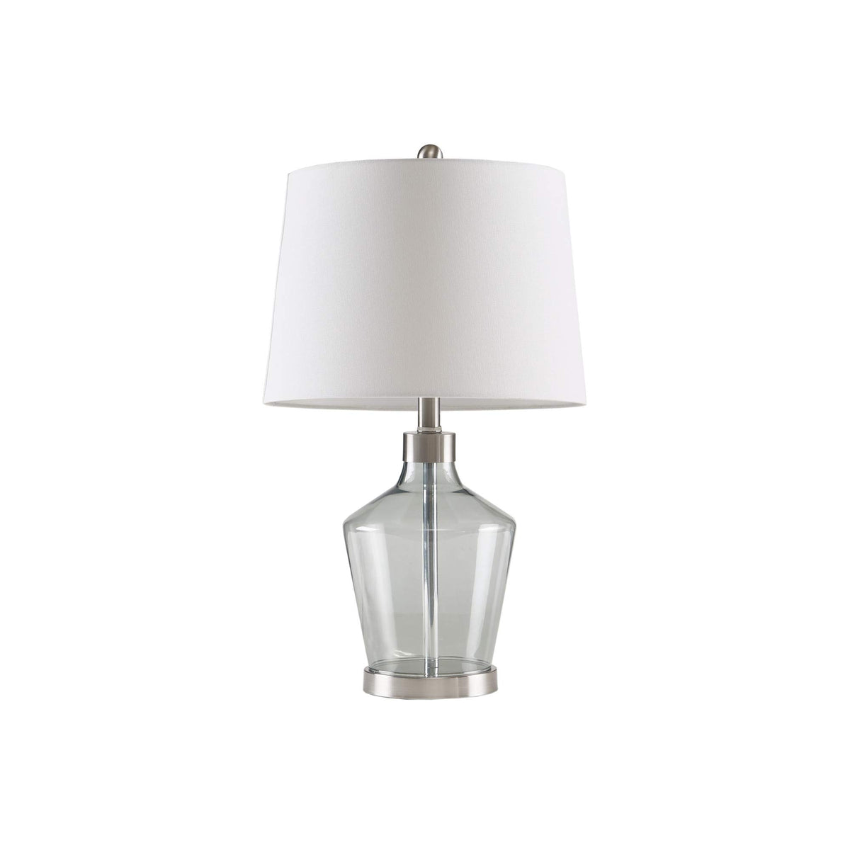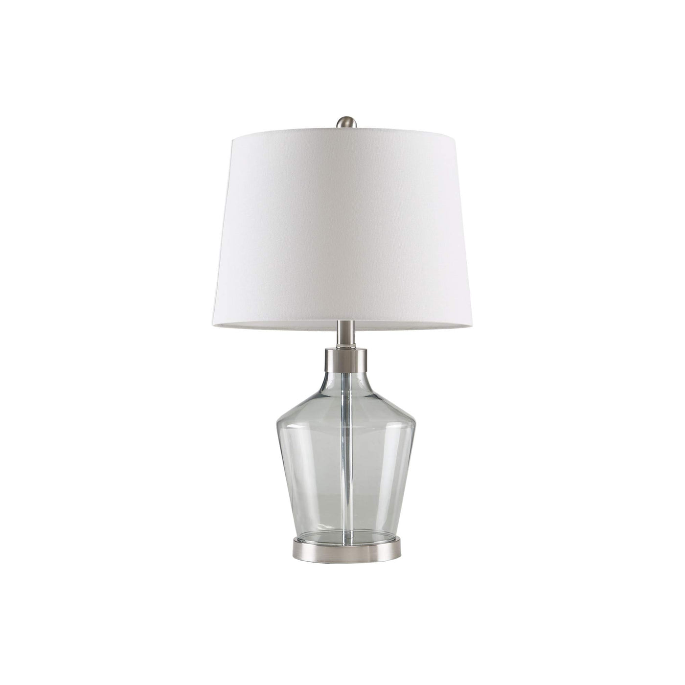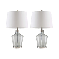 Update your living room or bedroom with the sleek style of the Harmony Angular Glass Table Lamp, Set of 2. This beautifully designed glass table lamp features a bold gray hue that adds a soft touch of color to your space. The white tapered drum-shaped lamp shade tastefully complements the base, softly filtering the light to create a warm glow. Each lamp requires one Type A light bulb, which is included. Plus, enjoy peace of mind with a 2-year warranty.