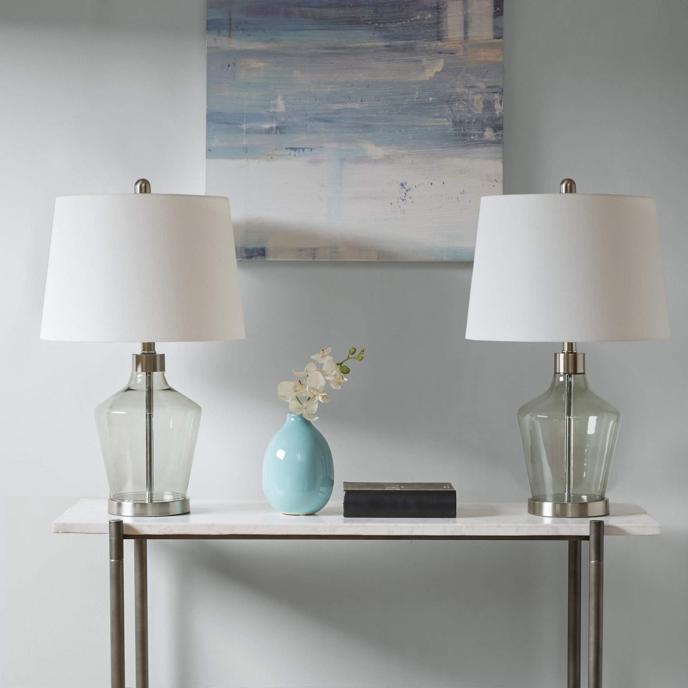 510 Design Harmony Table Lamp Set Of 2, Modern Grey Glass & Metal, 24.75"H, Desk & Nightstand Use