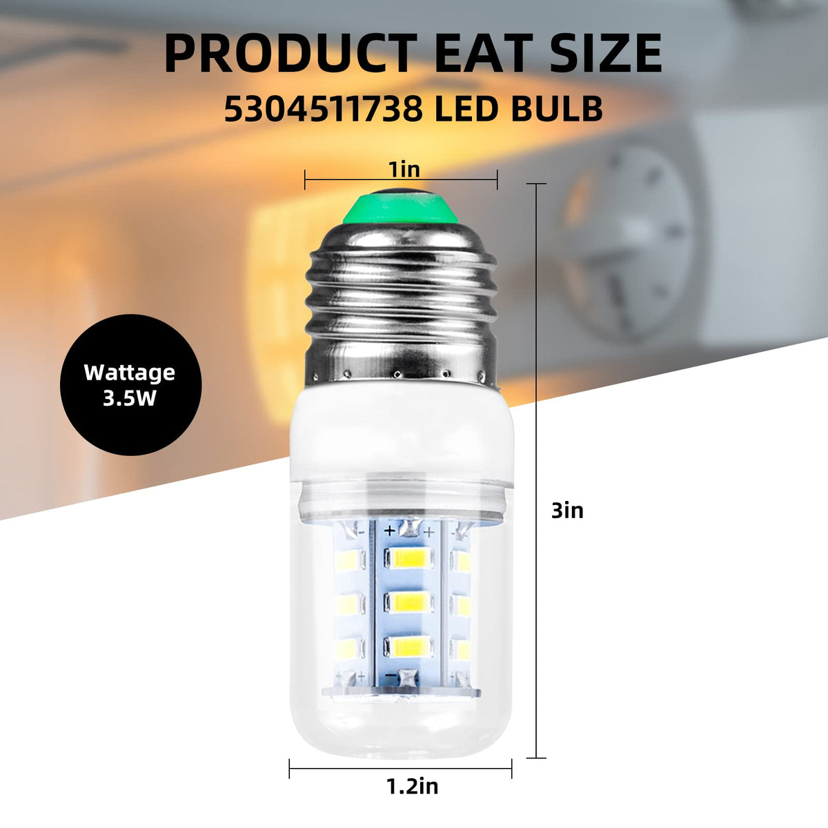 Q: What refrigerator models are compatible with the 5304511738 LED light bulb?A: The 5304511738 LED light bulb is designed to replace specific models including KEID34L, 4584444, AP6278388, and PS12364857. It is also compatible with Frigidaire refrigerator models such as FFSS2615TE0, FFSS2615TP0, FFSS2615TS0, and many more.