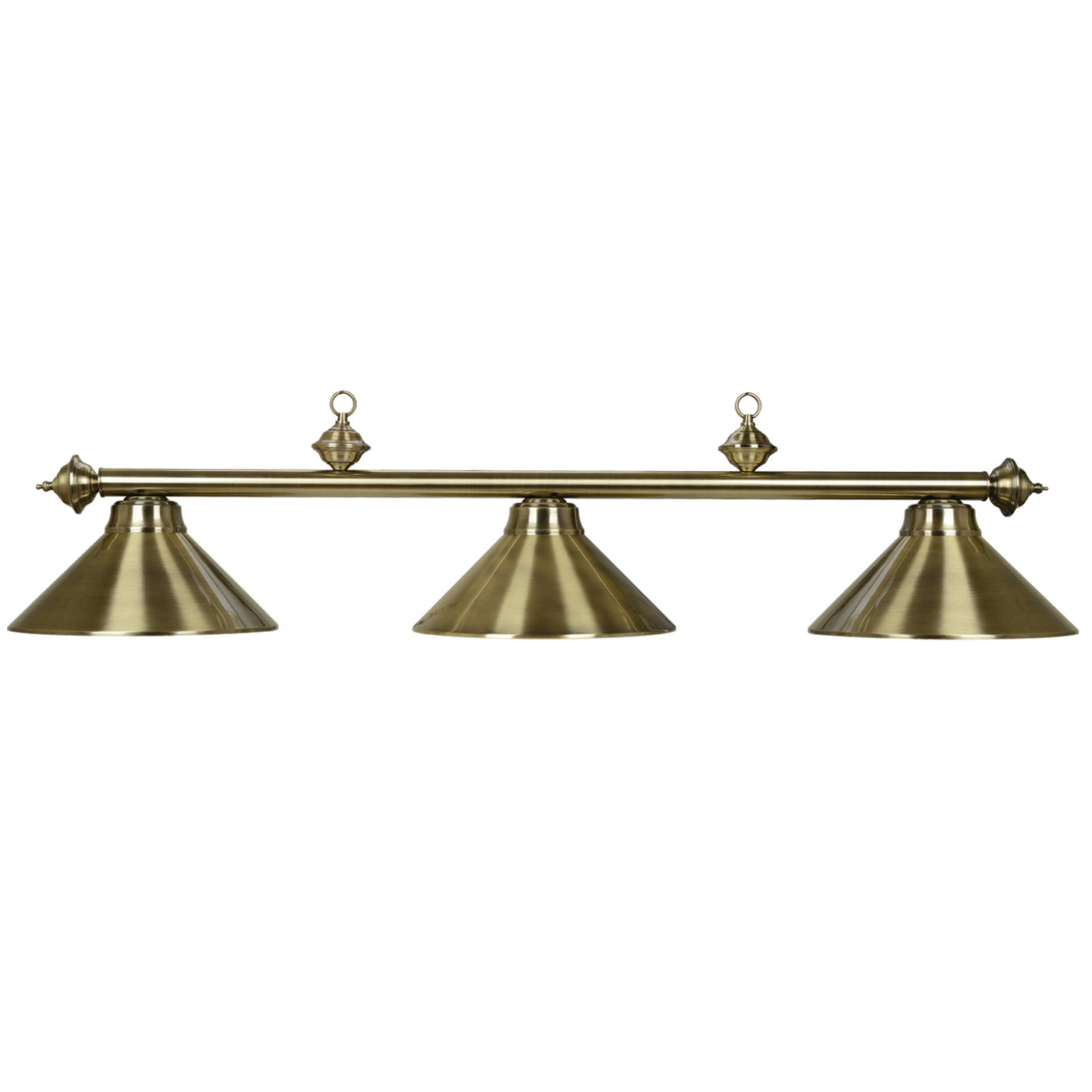 Classic and sophisticated, this 54 inch, 3-light metal billiards light fixture is exactly the upgrade your game room needs. Offering plentiful lighting for the home bar or for a pool table, this fixture features three metal cone shades to deliver directed illumination. Three foot chains on either side suspend this stylish fixture from the ceiling. The metal bar and shades feature matching finishes for a composed, elegant look. Made up of materials, Metal Bar, Metal Shades. Manufactured by RAM Game Room. Manufactured in Country of United States.