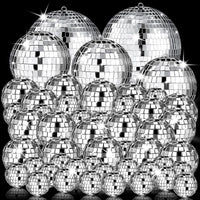 54 Pcs Disco Ball, Hanging Disco Ball Decor Mini Silver Disco Ball Cake Topper Mirror Ball Decorations 74S Disco Themed Party We